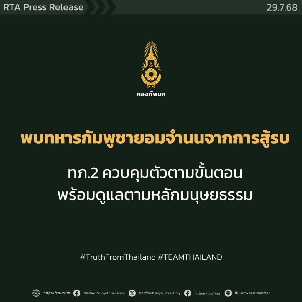 Royal Thai Army Public Relations Center, Army Spokesperson Team, 29 July 2025