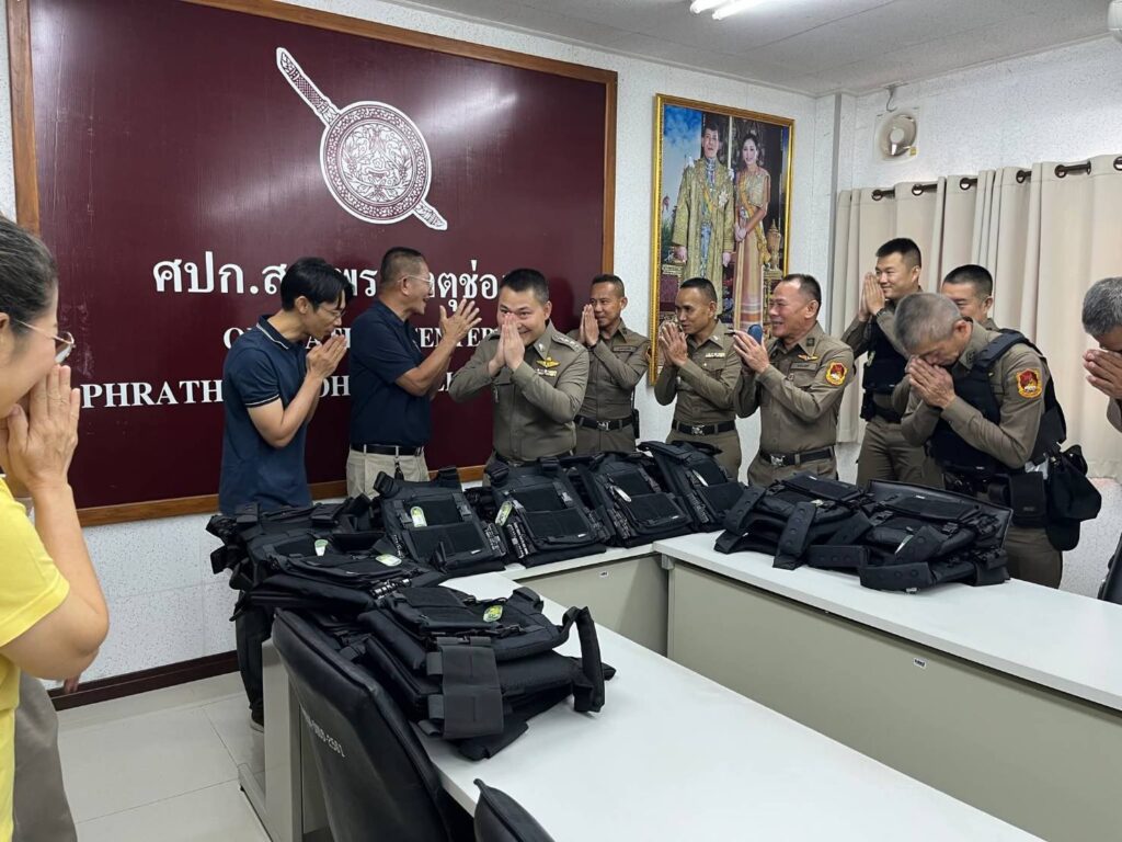 บ.ไนน์ตี้ไนน์นู้ดเดิล จำกัด มอบเสื้อเกราะกันกระสุน ให้ สภ.พระธาตุช่อแฮ ใช้ในการปฏิบัติหน้าที่ ดูแลชีวิตและทรัพย์สินของพี่น้องประชาชน เมื่อวันที่ 1 สิงหาคม 2568 ที่ห้องประชุม สภ.พระธาตุช่อแฮ ภจว.แพร่ พ.ต.อ.กุศลพันธุ์ สิงห์ใจ ผกก.สภ.พระธาตุช่อแฮ พร้อมด้วย นายวิทยา กันกา นายกองค์การบริหารส่วนตำบลป่าแดง (ประธาน กต.ตร.สภ.พระธาตุช่อแฮ) นาย อนันต์ แดงชนะ กำนันตำบลช่อแฮ นายชาตรี คำเขื่อน ผอ.รพ.สต.ป่าแดง ร.ต.อ.สมฤทธิ์ เขื่อนแก้ว รอง นายกเทศมนตรีตำบลสวนเขื่อน นายอาทิตย์ ใจเด็จ เจ้าพนักงานป้องกันฯ น.ส.วิรากร เหล็กคำ ผช.จพง. ประชา สัมพันธ์ เทศบาลตำบลช่อแฮ (กต.ตร.สภ.พระธาตุช่อแฮ) นายวิทยา กันกา นายก อบต.ป่าแดง (ประธาน กต.ตร.สภ.พระธาตุช่อแฮ) กล่าวว่า ได้รับมอบเสื้อเกราะกันกระสุน จำนวน 35 ตัว รวมมูลค่า 133,000 บาท จากนายยศธร ล้อเฮงสกุลวงศ์ ตัวแทน บริษัท ไนน์ตี้ไนน์นู้ดเดิล จำกัด เพื่อให้เจ้าหน้าที่ตำรวจ สภ. พระธาตุช่อแฮ ใช้ในการปฏิบัติหน้าที่ ดูแลชีวิตและทรัพย์สินของพี่น้องประชาชน "สภ.พระธาตุช่อแฮ ขอขอบ คุณ บริษัท ไนน์ตี้ไนน์นู้ดเดิล จำกัด ที่ให้การสนับสนุนการปฏิบัติหน้าที่ของตำรวจ กต.ตร.สภ.พระธาตุช่อแฮ ที่สนับสนุนการประสานงานในครั้งนี้ และขอขอบคุณ คุณตี๋ โบกี้วัน Bogie Tee Bogie1 ผู้ส่งออกและจัดจำหน่าย เสื้อเกราะ รองเท้าเดินป่า อุปกรณ์ทหารตำรวจ ที่ให้ราคาพิเศษสำหรับเสื้อเกราะในครั้งนี้ ธีรพงษ์ ธงออน/แพร่ 061-595-5297