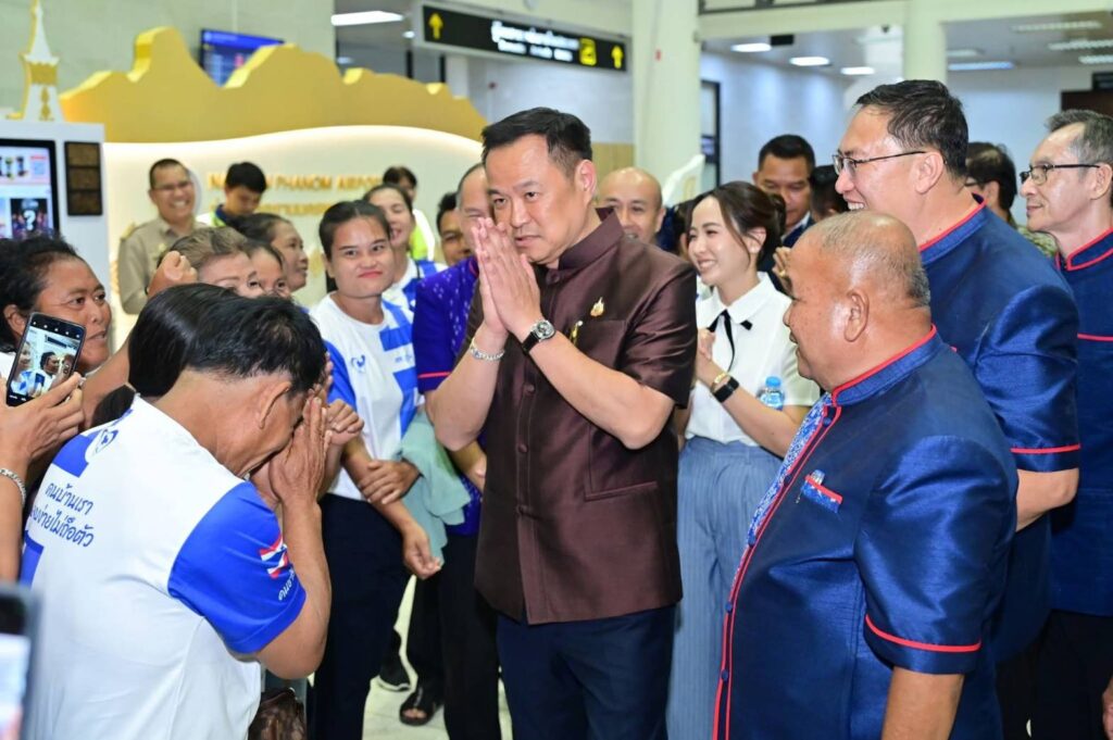 วันนี้ (7 ต.ค. 2568) เวลา 16.50 น. นายอนุทิน ชาญวีรกูล นายกรัฐมนตรีและรัฐมนตรีว่าการกระทรวงมหาดไทย เดินทางถึงท่าอากาศยานนครพนม เพื่อปฏิบัติภารกิจในพื้นที่ โดยมีนางธนนนท์ นิรามิษ ภริยานายกรัฐมนตรี พร้อมด้วยนายโสภณ ซารัมย์ รองนายกรัฐมนตรี น.ส.ศุภมาส อิศรภักดี รมต.ประจำสำนักนายกรัฐมนตรี น.ส.ซาบีดา ไทยเศรษฐ์ รมว.วัฒนธรรม และคณะผู้บริหารระดับสูงกระทรวงมหาดไทยร่วมเดินทางมาด้วย