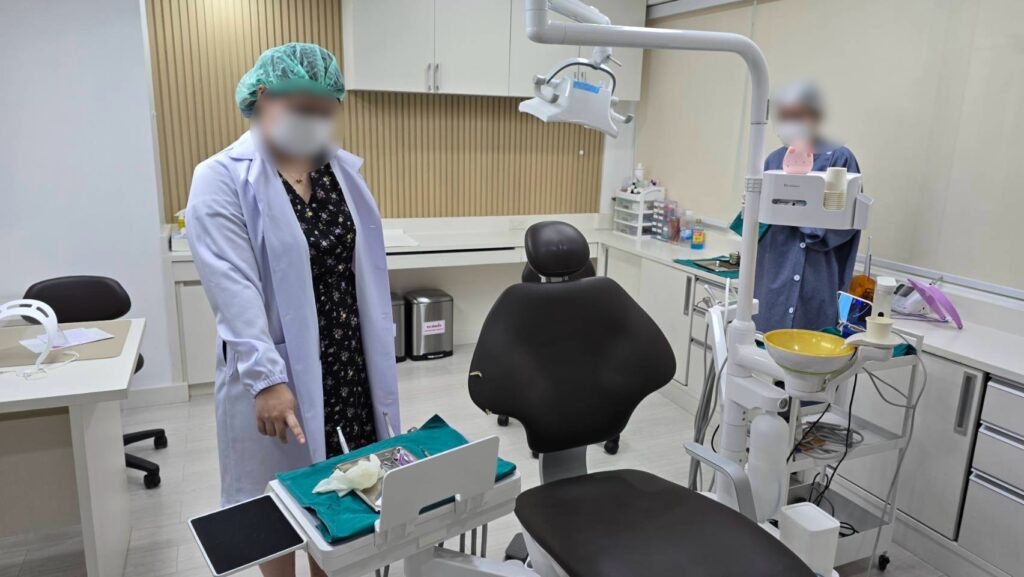 โดยในวันที่ 6 ตุลาคม 2568 เจ้าหน้าที่ตำรวจ กก.4 บก.ปคบ. ร่วมกับเจ้าหน้าที่ทันตแพทยสภา เข้าตรวจสอบคลินิกทันตกรรมดังกล่าว พบ น.ส.บี (สงวนชื่อนามสกุลจริง) อายุ 26 ปี ผู้ต้องหา กำลังให้บริการทำหัตการขูดหินปูนให้กับประชาชนผู้มาใช้บริการ จากการตรวจสอบพบว่าผู้ต้องหาไม่มีใบอนุญาตประกอบวิชาชีพทันตกรรม โดยรับว่าจบการศึกษาคณะทันตแพทยศาสตร์ภายในประเทศ แต่ยังไม่ได้สอบใบประกอบวิชาชีพ ยังไม่สามารถประกอบวิชาชีพทันตกรรมได้ จึงใช้วิธีการปลอมแปลงใบประกอบวิชาชีพทันตแพทย์รายอื่น เพื่อแสดงว่าตนมีใบประกอบวิชาชีพเพิ่มความน่าเชื่อถือ และสมัครเป็นทัตนแพทย์และให้การรักษาผู้ป่วยตามคลินิกต่างๆ โดยทำมาแล้วประมาณ 2 ปี เจ้าหน้าที่ตำรวจจึงร่วมกันจับกุม น.ส.บีฯ ส่งพนักงานสอบสวน กก.4 บก.ปคบ. ดำเนินคดี