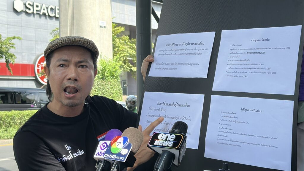 จ่าคิงส์ พาหญิง ผอ. ซี 8 ร้องกองปราบฯ โดนเพื่อนเอามือถือไปกู้เงินผ่านแอปเถื่อน ดูดข้อมูล-ประจานรูปด่า“กะหรี่”สูญเงินกว่า 3 แสน เวลา 10.30 น. วันที่ 21 ต.ค. 68 น.ส.ออย (นามสมมติ) อายุ 50 ปี ข้าราชการระดับ ผอ.ระดับ 8 ได้เข้ายื่นเรื่องขอความเป็นธรรมและขอความช่วยเหลือจาก จ่าคิงส์ แตงทิม สะพานใหม่ อดีต สห.ทอ. และทีมงาน ภายหลังตกเป็นเหยื่อของ “แอปพลิเคชันสินเชื่อเถื่อน” ที่ชื่อว่า “App ทรัพย์พลัส“ 32 App จนเกือบคิดสั้นเพราะความอับอายขายหน้าน.ส.ออย เปิดเผยว่า ตนเป็น ผอ.ในกระทรวงหนึ่ง ปัจจุบันอยู่กับคุณแม่วัย 80 ปี เมื่อเดือนสิงหาคมที่ผ่านมา ตนถูกเพื่อนสนิทขอร้องให้ช่วยกู้เงินผ่านแอปพลิเคชันดังกล่าว ด้วยความสงสารและไว้ใจ เนื่องจากตนทำไม่เป็น เพื่อนจึงเอาโทรศัพท์ของตนไปดำเนินการให้ และนำเงินที่กู้ได้จำนวนประมาณ 180,000 บาทไป สุดท้ายเพื่อนกลับบล็อกเบอร์และหนีหายไป ทำให้ตนต้องรับภาระหนี้สินเองปัญหาคือ App ทรัพย์พลัส 32 App เป็นแอปฯ เถื่อนที่ต้องชำระหนี้ทุก 7 วัน ซึ่งขณะนี้ตนได้จ่ายเงินไปแล้วรวมกว่า 300,000 บาท แต่แอปฯ ยังคงตามทวงหนี้อย่างต่อเนื่อง โดยมีบุคคลที่ใช้ภาษาไม่ชัดเจนคล้ายคนกัมพูชาโทรศัพท์มาข่มขู่คนรู้จักตนทุกเบอร์ อีกทั้งยังมีการ “ดูดข้อมูล” ในโทรศัพท์มือถือของตนไปทั้งหมด ทั้งรายชื่อ, รูปภาพ, ข้อมูลในเฟซบุ๊กและไลน์จุดที่ทำให้ น.ส.ออย รู้สึกอับอายจนไม่อยากมีชีวิตอยู่ คือการที่มิจฉาชีพได้นำข้อมูลที่ดูดไป โพสต์ประจาน ที่หน้าเฟซบุ๊กของเพื่อนหลายคน โดยใช้ถ้อยคำหยาบคาย ด่าทอตนว่า “ต่ำ” และ “เป็นกะหรี่” ทำให้ตนซึ่งไม่เคยเป็นหนี้ใครและมีตำแหน่งหน้าที่การงานดี ต้องเสื่อมเสียชื่อเสียงอย่างร้ายแรง “คนที่ไม่เข้าใจ ก็มากล่าวหาว่าตนไปกู้ยืมเงินมาเปย์ผู้ชาย ซึ่งไม่เป็นเรื่องจริง สาเหตุมาจากเพื่อนตัวแสบคนดังกล่าวที่รู้จักกันมาตั้งแต่สมัยเป็นเด็กๆ มาหลอกลวง ตนอยู่กับคุณแม่วัยชราอายุกว่า 80 ปี ไม่เคยมีเรื่องเสื่อมเสียเกี่ยวกับผู้ชาย เลยเสียใจเสียความรู้สึกมากจนเครียด“น.ส.ออย กล่าวด้วยน้ำตาว่า ตนพลาดเพราะรักและเชื่อใจเพื่อน จึงวิงวอนขอให้ จ่าคิงส์ ช่วยประสานพามายังกองปราบปราม เพื่อให้สามารถผ่านวิกฤตครั้งนี้ไปได้ด้าน อาจารย์มานพ สีเหลือง นักบัญชีและกฎหมาย ได้ออกมาเตือนถึงอันตรายจาก “แอปพลิเคชันสินเชื่อเถื่อน” ว่า ปัญหาหลักคือการได้เงินไม่ตรงยอดกู้ และการถูกหลอกให้ “ให้สิทธิเข้าถึงข้อมูล” ในโทรศัพท์ ซึ่งมิจฉาชีพจะนำไปใช้ในการ ทวงหนี้ที่รุนแรง ด้วยการข่มขู่และประจาน จนเคยนำไปสู่โศกนาฏกรรมดังเช่นกรณีหนุ่มโรงงาน