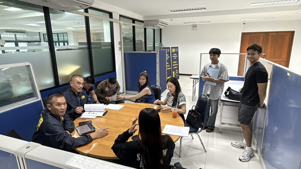 การเข้าแจ้งความครั้งนี้มี พ.ต.อ.ไกรวิศท์ แสนทวีสุข ผกก.1, พ.ต.ท.ปริญญา ปาละ รอง ผกก.1 และ ร.ต.ท.สุรทัศ สร้อยสน รอง สว.(สอบสวน) กก.1 บก.ปคบ. เป็นผู้รับเรื่องและสอบปากคำกลุ่มผู้เสียหาย