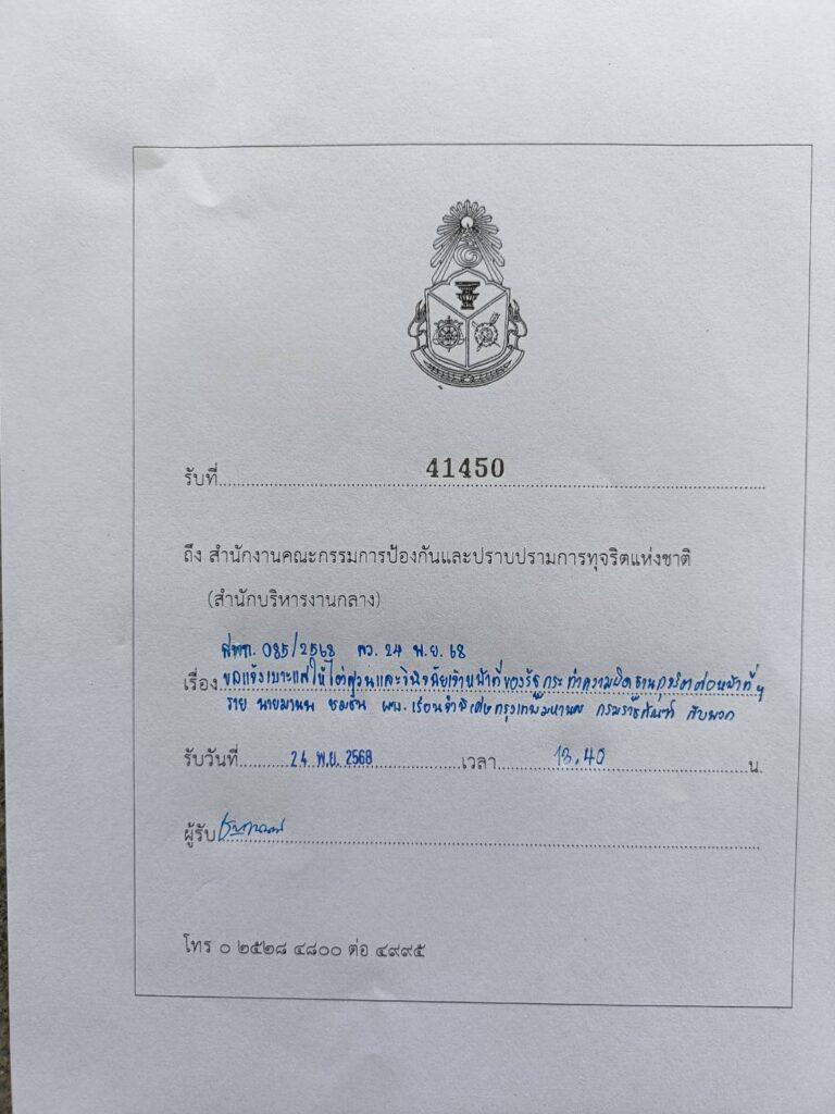 วันนี้ (24 พ.ย.68) เวลา 13.30 น. ที่สำนักงานใหญ่ ป.ป.ช. นนทบุรี นายศรีสุวรรชนณจรรยา ผ็นำองค์กรรักชาติ รักแผ่นดิน ได้เดิใึนทางไปยื่นคำร้องต่อ ป.ป.ช. เพื่อขอให้ไต่สวนและวินิจฉัยชี้มูลความผิด อดีต ผบ.เรือนจำพิเศษกรุงเทพฯกับพวกหลังถูกย้ายให้ไปเป็นผู้ตรวจฯ หลังตรวจพบมีการนำหญิงสาวมาบริการนักโทษจีนเทาบางรายในห้องลับและพบสิ่งของต้องห้ามมากมายในห้องลับ อันเข้าข่ายเป็นเจ้าหน้าที่ของรัฐกระทําความผิดฐานทุจริตต่อหน้าที่ หรือกระทําความผิดต่อตําแหน่งหน้าที่ราชการ หรือความผิดต่อตําแหน่งหน้าที่ในการยุติธรรม ตามกฎหมายของ ป.ป.ช.โดยตรง