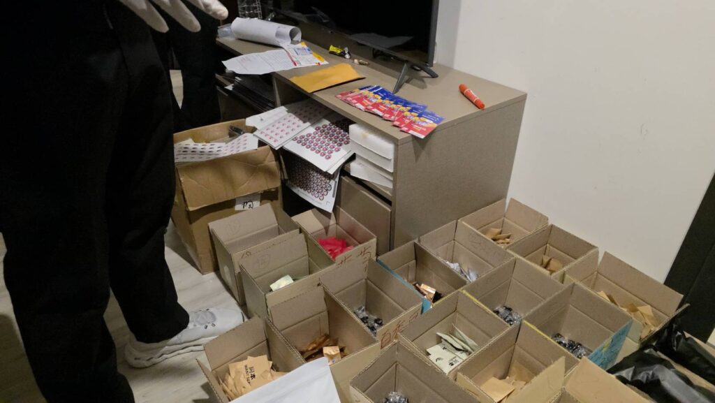 จากการตรวจค้นภายในห้องพบของกลาง พอต บุหรี่ไฟฟ้าพร้อมใช้งาน กว่า 1,000 ชิ้น และอุปกรณ์การผลิตอีกจำนวนมาก รวมมูลค่ากว่า 600,000 บาท