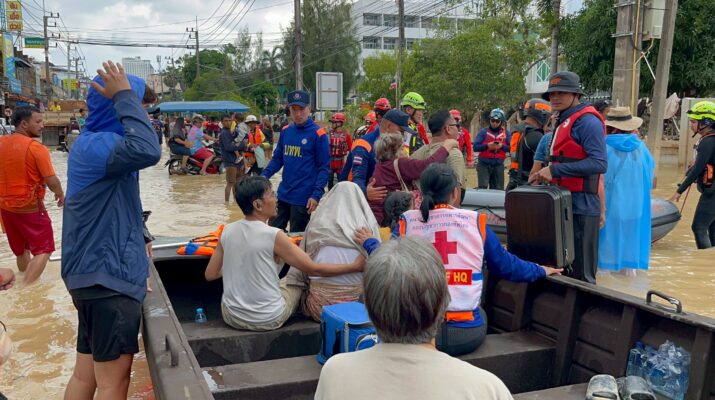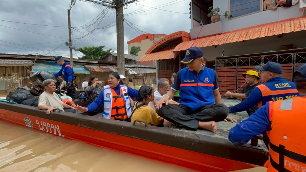 โดยได้นำ ทีมหมอทหาร ลงเรือเข้าตรวจรักษาอาการเจ็บป่วยทั่วไป และแจกจ่ายยา–เวชภัณฑ์ให้กับประชาชนที่ยังติดค้างในพื้นที่น้ำท่วมสูง ไม่สามารถเดินทางออกมารับบริการทางการแพทย์ได้