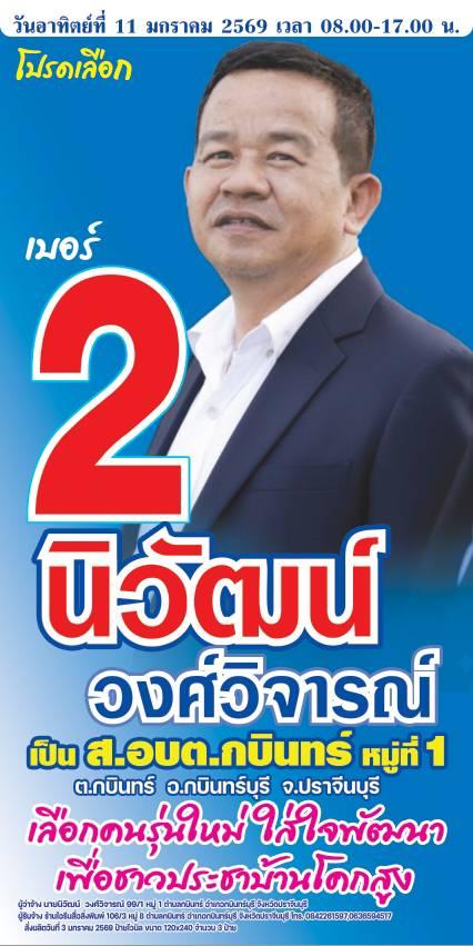 “นิวัฒน์ วงศ์วิจารณ์” เปิดตัวคึกคัก! ลุยสมัคร ส.อบต.กบินทร์บุรี เบอร์ 2 ประกาศตั้งใจทำงานเพื่อชุมชนโคกสูงอย่างจริงใจและโปร่งใสวันที่ 1 ธันวาคม 2568 บรรยากาศวันแรกของการรับสมัครนายกและสมาชิกองค์การบริหารส่วนตำบลกบินทร์บุรี จังหวัดปราจีนบุรี เป็นไปอย่างคึกคัก ภายในห้องประชุม อบต. มีผู้สมัครทยอยเดินทางมาลงทะเบียนตั้งแต่ช่วงเช้า ท่ามกลางการดูแลของเจ้าหน้าที่อย่างเรียบร้อยหนึ่งในผู้สมัครที่ได้รับความสนใจคือ นายนิวัฒน์ วงศ์วิจารณ์ ผู้สมัครสมาชิก อบต.กบินทร์บุรี หมู่ 1 หมู่บ้านโคกสูง หมายเลข 2 ซึ่งได้ประกาศจุดยืนชัดเจนว่า ต้องการเข้ามาทำงานเพื่อพัฒนาชุมชนอย่างสร้างสรรค์ โปร่งใส และยั่งยืนนายนิวัฒน์กล่าวว่า“ผมขออาสาพี่น้องหมู่บ้านโคกสูง ให้โอกาสผมได้เข้ามาทำงานรับใช้ทุกคน จะทำหน้าที่ด้วยความซื่อสัตย์ ตั้งใจ และพร้อมผลักดันโครงการที่เป็นประโยชน์ต่อคุณภาพชีวิตของชุมชนอย่างเต็มที่”🔹 แนวทางพัฒนาเชิงสร้างสรรค์ที่นายนิวัฒน์ตั้งใจผลักดันส่งเสริมอาชีพและเศรษฐกิจฐานราก สนับสนุนกลุ่มอาชีพและผลิตภัณฑ์ชุมชน เพิ่มช่องทางขายออนไลน์พัฒนาโครงสร้างพื้นฐานในหมู่บ้าน เช่น ถนน แสงสว่างสาธารณะ และระบบน้ำประปาดูแลผู้สูงอายุและกลุ่มเปราะบาง จัดกิจกรรมสร้างสุขภาพและจัดโครงการช่วยเหลือถึงบ้านผลักดันเยาวชนให้มีพื้นที่สร้างสรรค์ สนับสนุนกีฬา ดนตรี และกิจกรรมเรียนรู้นอกห้องเรียนบริหารงานด้วยความโปร่งใส ตรวจสอบได้ เปิดเผยข้อมูลการใช้งบประมาณและรับฟังความคิดเห็นประชาชนทุกขั้นตอนนายนิวัฒน์ย้ำว่า เขาพร้อมทำงานร่วมกับทุกภาคส่วนในพื้นที่ เพื่อพัฒนา “โคกสูง–กบินทร์บุรี” ให้ก้าวหน้าอย่างยั่งยืน และหวังว่าจะได้รับความไว้วางใจจากประชาชนในครั้งนี้#นิวัฒน์วงศ์วิจารณ์ #อบตกบินทร์บุรี #โคกสูง #เลือกตั้งอบต #พัฒนาชุมชน #ทำงานโปร่งใส #ทีมพัฒนากบินทร์บุรี