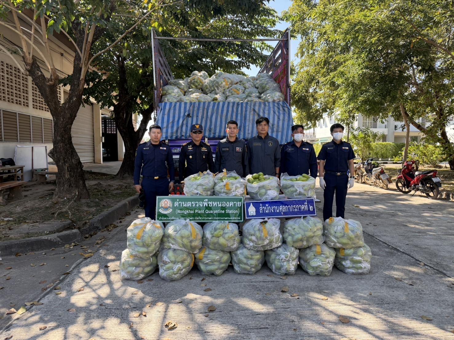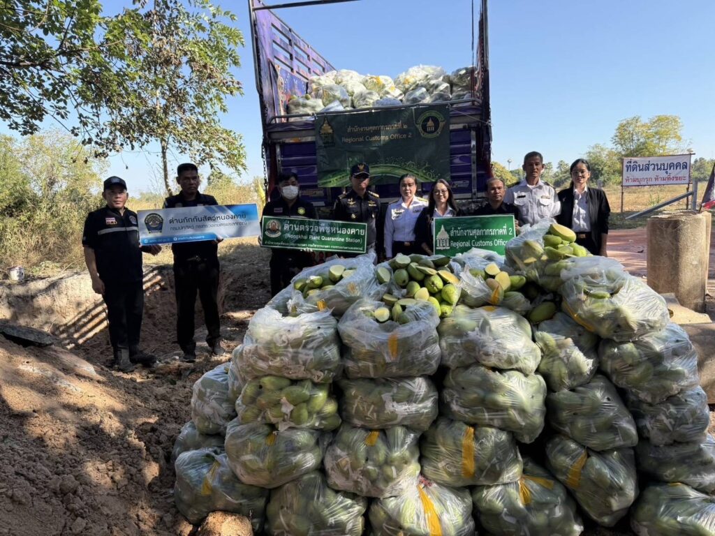จากนั้นวันที่ 1 ธันวาคม 2568 นางสาวลลิตา อรรถพิมล ผู้อำนวยการสำนักงานศุลกากรภาคที่ 2 มอบหมาย ให้คณะกรรมการทำลายของกลาง ศภ.2 นำของกลางประเภท มะม่วงสด เมืองกำเนิดต่างประเทศ ที่คดีถึงที่สุดแล้ว นำไปทำลาย จำนวน 650 ถุง น้ำหนักรวม 13,000 กิโลกรัม ซึ่งสินค้าดังกล่าว เป็นสิ่งของต้องห้ามตามพระราชบัญญัติกักพืช พ.ศ. 2507 และที่แก้ไขเพิ่มเติม และของกลางตกเป็นของแผ่นดินตามกฎหมายศุลกากรแล้ว โดย นางสาววัชริน แหลมคม หัวหน้าด่านตรวจพืชหนองคาย มอบหมายให้ นายประสิทธิ์ ทองทิพย์ นักวิชาการเกษตรชำนาญการ ร่วมนำของกลางไปทำลายโดยการ ฝังกลบด้วยดิน ณ สำนักสงฆ์สันติธรรม ตำบลหนองกอมเกาะ อำเภอเมืองหมองคาย จังหวัดหนองคาย