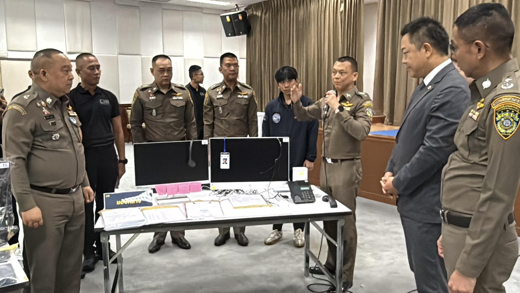 ตำรวจสอบสวนกลาง (CIB) ร่วมมือสถานเอกอัครราชทูตสาธารณรัฐเกาหลีประจำประเทศไทย ปฏิบัติการบุกทลายแก๊งคอลเซ็นเตอร์ชาวเกาหลีใต้ กองบังคับการปราบปรามการกระทำความผิดเกี่ยวกับอาชญากรรมทางเทคโนโลยี (บก.ปอท.) ภายใต้การอำนวยการของ พล.ต.ท.ณัฐศักดิ์ เชาวนาศัย ผบช.ก., พล.ต.ต.อธิป พงษ์ศิวาภัย รอง ผบช.ก., พล.ต.ต.โสภณ สารพัฒน์ รอง ผบช.ก., พล.ต.ต.ชนันนัทธ์ สารถวัลย์แพศย์ ผบก.ปอท., พ.ต.อ.วัชรพันธ์ ศิริพากย์, พ.ต.อ.เนติ วงษ์กุหลาบ รอง ผบก.ปอท., พ.ต.อ.ภานุภัท กิตติพันธ์ ผกก.1 บก.ปอท. เจ้าหน้าที่ตำรวจ กก.1 บก.ปอท. ชุดจับกุมประกอบด้วย พ.ต.ท.เอกพล แสงอรุณ, พ.ต.ท.ธีรภพ พันธุชาติ รอง ผกก.1 บก.ปอท., พ.ต.ท.ณัฐวุฒิ มาระตา รอง ผกก.(สอบสวน) กก.1 บก.ปอท., พ.ต.ท.หญิง หทัยชนก อินทรวิจิตร, พ.ต.ต.กษิดิศ ดิลกคุณานันท์ สว.กก.1 บก.ปอท., ร.ต.อ.ทัศพงษ์ ผ่องใส, ร.ต.อ.ปฏิญญา สงวนศักดิ์เกษร, ร.ต.อ.วิฑิตพงษ์ ราชู รอง สว.กก.1 บก.ปอท., ด.ต.พีรวุฒิ โชติช่วง, ด.ต.ภานุวัติ เปี้ยนสีทอง, ด.ต.เอกชัย บุญบุตร,ด.ต.หญิง อภิลักษณ์ รัตนิยะ, จ.ส.ต.เจตธัช มหินทรเทพ, จ.ส.ต.กฤติเดช หอละเอียด ผบ.หมู่ กก.1 บก.ปอท ร่วมกับ เจ้าหน้าที่แผนกกงสุลตำรวจสถานเอกอัครราชทูตสาธารณรัฐเกาหลีประจำประเทศไทย และ เจ้าหน้าที่ตำรวจ กลุ่มงานสนับสนุนฯ บก.ปอท. ร่วมกันจับกุมผู้ต้องหาชาวเกาหลีใต้และชาวจีน จำนวน 17 ราย ได้แก่ 1. Mr.JOENGMIN LEE (ลี จองมิน) อายุ 31 ปี สัญชาติเกาหลีใต้ 2. Mr.INTAE KIM (คิม อินแท) อายุ 32 ปี สัญชาติเกาหลีใต้ 3. Mr.Takoon HA (ฮา แทกุน) อายุ 38 ปี สัญชาติเกาหลีใต้ 4. Mr.JIYUL KIM (คิม จียุล) อายุ 32 ปี สัญชาติเกาหลีใต้ 5. Mr.SUNHAN EOM (ออม-ซอน-ฮัน) อายุ 34 ปี สัญชาติเกาหลีใต้ 6. Mr.JUNYEOP KIM (คิม-จุน-ย็อบ) อายุ 28 ปี สัญชาติเกาหลีใต้ 7. Mr.JESUP BYEON (บยอน-เจ-ซ็อบ) อายุ 33 ปี สัญชาติเกาหลีใต้ 8. Mr.EUNKYUN KIM (คิม-อึน-กยุน) อายุ 43 ปี สัญชาติเกาหลีใต้ 9. Mr.SUNGGYUN KWON (คว็อน-ซ็อง-กยุน) อายุ 30 ปี สัญชาติเกาหลีใต้ 10. Mr.YUL HONG (ฮง-ยุล) อายุ 29 ปี สัญชาติเกาหลีใต้ 11. Mr.MUNCHEOL CHO (โจ-มุน-ช็อล) อายุ 35 ปี สัญชาติเกาหลีใต้ 12. Mr.TAEHWAN LIM (อิม-แท-ฮวัน) อายุ 35 ปี สัญชาติเกาหลีใต้ 13. Mr.JEONGBEEN LEE (ลี-จอง-บิน) อายุ 29 ปี สัญชาติเกาหลีใต้ 14. Mr.TAEGWON LEE (ลี-แท-กวอน) อายุ 27 ปี สัญชาติเกาหลีใต้ 15. Mr.MINGZHENG LIU (หลิว-หมิง-เจิ้ง) อายุ 29 ปี สัญชาติจีน 16. Mr.CAIHUA LI (อี-แช-ฮวา) อายุ 43 ปี สัญชาติจีน 17. Mr.LINHU CHE (ชา-ริน-ฮู) อายุ 35 ปี สัญชาติจีน ในความผิดฐาน “เป็นคนต่างด้าวทำงานโดยไม่มีใบอนุญาตทำงาน และเป็นบุคคลต่างด้าวอยู่ในราชอาณาจักรโดยการอนุญาตสิ้นสุด” ตามมาตรา 8 ประกอบมาตรา 101 แห่ง พรก.การบริหารการจัดการการทำงานของคนต่างด้าว พ.ศ.2560 และมาตรา 81 แห่ง พรบ.คนเข้าเมือง พ.ศ.2522 พฤติการณ์ของคดี สืบเนื่องจากประเทศไทยและสาธารณรัฐเกาหลีใต้มีความสัมพันธ์อันดีระหว่างกันมาโดยตลอด และมีแนวทางร่ว