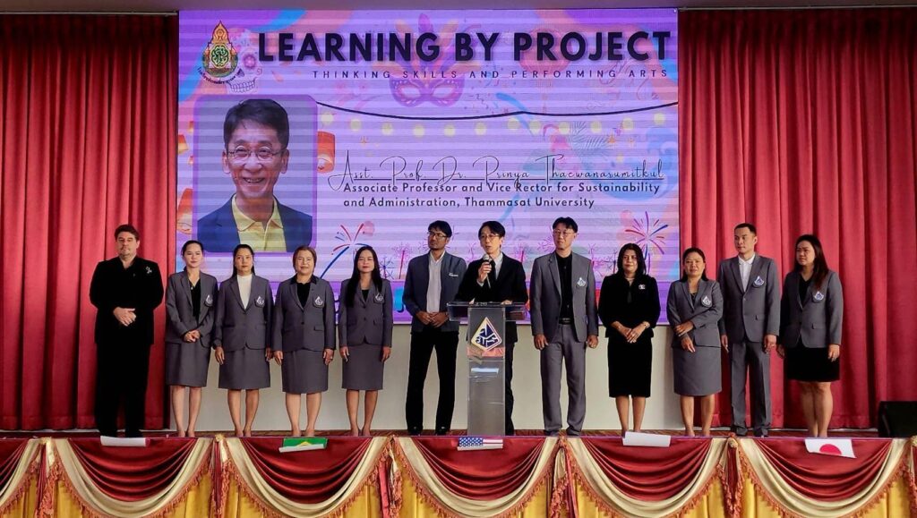เมื่อเวลา 09.00 น. วันที่ 19 ธันวาคม 2568 ที่ โดมอเนกประสงค์ โรงเรียนประถมศึกษาธรรมศาสตร์ (ป.ม.ธ.) สังกัด สำนักงานเขตพื้นที่การศึกษาประถมศึกษาปทุมธานี เขต 1 อ.คลองหลวง จ.ปทุมธานี ผศ. ดร.ปริญญา เทวานฤมิตรกุล ประธานคณะกรรมการสถานศึกษาขั้นพื้นฐานโรงเรียนประถมศึกษาธรรมศาสตร์ เป็นประธานเปิดงานแสดงผลงานนักเรียน Learning by project นักเรียนโครงการ English Program ในกิจกรรม WORLD FESTIVAL โดยมี นายทินกร คุ้มวงษ์ ผู้อำนวยการโรงเรียนประถมศึกษาธรรมศาสตร์ พร้อมด้วย คณะผู้บริหาร คณะกรรมการสถานศึกษาขั้นพื้นฐานโรงเรียนประถมศึกษาธรรมศาสตร์ คณะครู ผู้ปกครอง และ นักเรียน ให้การต้อนรับ