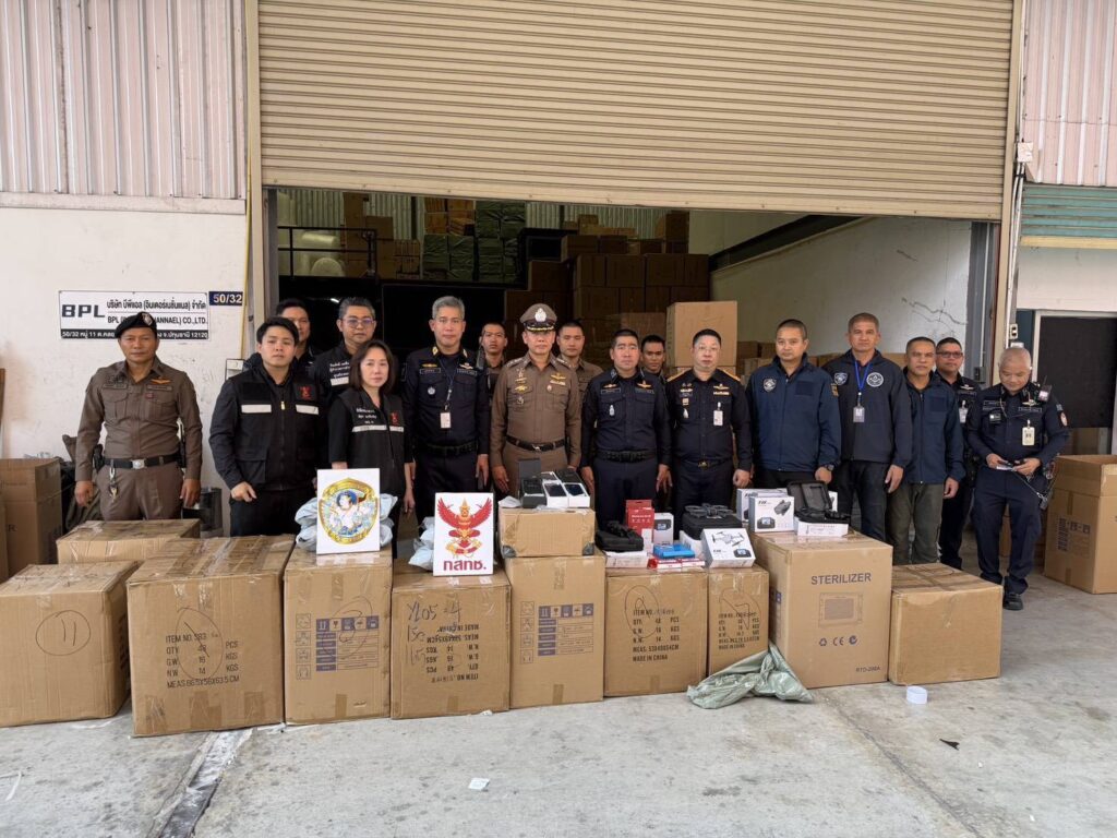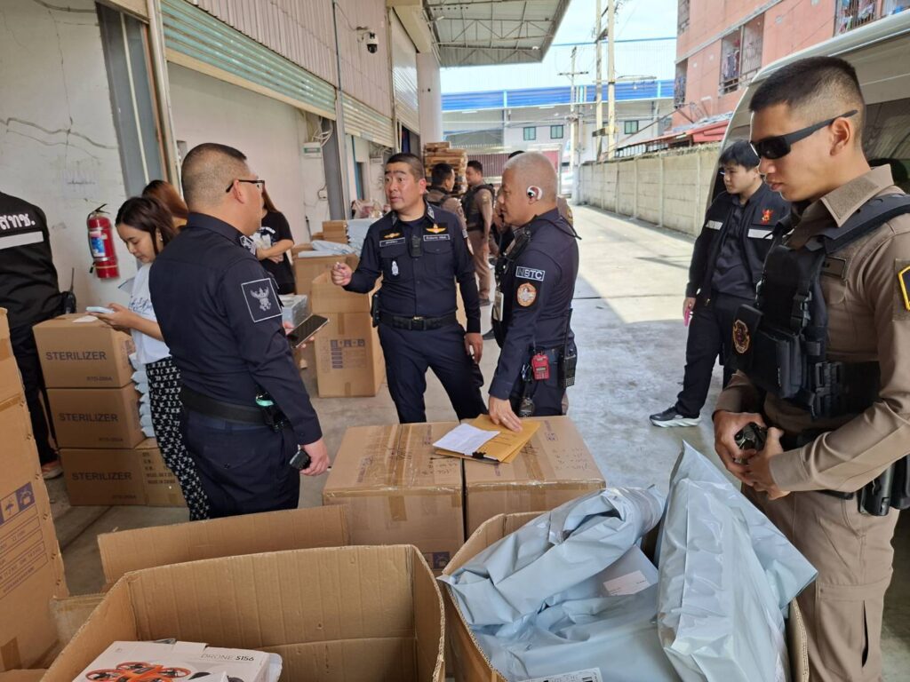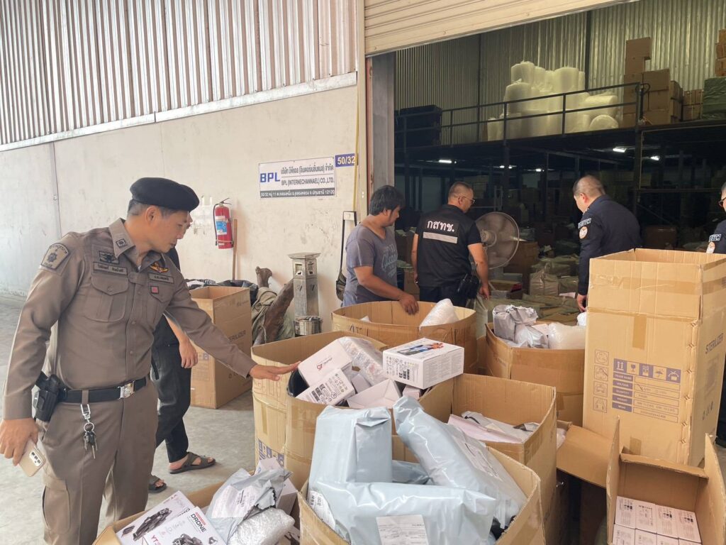 กสทช. ตรวจยึด อากาศยานซึ่งไม่มีนักบิน (Drone) จำนวน 1,839เครื่อง และแบตเตอรี่ จำนวน 704 ชิ้น เจ้าหน้าที่ กสทช.พร้อมด้วย เจ้าหน้าที่ตำรวจ (สอท 2) ,เจ้าหน้าที่สรรพสามิต,เจ้าหน้าที่ศุลกากรและเจ้าหน้าที่ สคบ เจ้าหน้าที่ตำรวจ สภ.คลองหลวง ได้ร่วมกันนำหมายค้นของศาลจังหวัดธัญบุรี เข้าตรวจคค้นบริเวณโกดังแห่งหนึ่ง ใน ต.คลองหนึ่ง อ.คลองหลวง จ. ปทุมธานี และได้พบกับ นายธนธร (สงวนนามสกุล) ผู้ครอบครองดูแลสถานที่ดังกล่าวพาตรวจตค้น พบ ของกลางจำนวน 16 รายการ แยกเป็น 1.เครื่องวิทยุคมนาคม ประเภท โทรศัพท์เคลื่อนที่ แบบ/รุ่น X30 จำนวน 296 เครื่อง 2.เครื่องวิทยุคมนาคม ประเภท โทรศัพท์เคลื่อนที่ แบบ/รุ่น X31 จำนวน 20 เครื่อง 3.เครื่องวิทยุคมนาคม ประเภท โทรศัพท์เคลื่อนที่ แบบ/รุ่น X39-6 จำนวน 200 เครื่อง 4.เครื่องวิทยุคมนาคม ประเภท โทรศัพท์เคลื่อนที่ แบบ/รุ่น X40 จำนวน 30 เครื่อง 5.เครื่องวิทยุคมนาคม ประเภท โทรศัพท์เคลื่อนที่ แบบ/รุ่น P30 Pro จำนวน 163 เครื่อง 6.เครื่องวิทยุคมนาคม ประเภท โทรศัพท์เคลื่อนที่ แบบ/รุ่น P40 Pro จำนวน 423 เครื่อง 7.เครื่องวิทยุคมนาคม ประเภท โทรศัพท์เคลื่อนที่ แบบ/รุ่น NOVA 7 จำนวน 28 เครื่อง 8.เครื่องวิทยุคมนาคม ประเภท โทรศัพท์เคลื่อนที่ แบบ/รุ่น VIVO Y19 จำนวน 1 เครื่อง 9.เครื่องวิทยุคมนาคม ประเภท โทรศัพท์เคลื่อนที่ แบบ/รุ่น Y50 จำนวน 13 เครื่อง 10.เครื่องวิทยุคมนาคม ประเภท โทรศัพท์เคลื่อนที่ แบบ/รุ่น ไม่ปรากฏ (รวม) จำนวน 95 เครื่อง 11.เครื่องวิทยุคมนาคม ประเภท 4G ROUTER จำนวน 151 เครื่อง 12.เครื่องวิทยุคมนาคม ประเภท POCKET WIFI จำนวน 109 เครื่อง 13.เครื่องวิทยุคมนาคม ประเภท 4G ANTANNA จำนวน 75 เครื่อง 14.เครื่องวิทยุคมนาคม ประเภท WINDBAND ANTANNA จำนวน 21 เครื่อง 15.เครื่องวิทยุคมนาคม ประเภท GPS TRACKER จำนวน 3 เครื่อง 16.เครื่องวิทยุคมนาคม ประเภทอากาศยานซึ่งไม่มีนักบิน (Drone) จำนวน 1,849 เครื่อง และแบตเตอรี่ จำนวน 704 ชิ้น โดยได้ตรวจสอบแล้วไม่ปรากฏว่าได้มีการออกใบอนุญาตที่เกี่ยวข้องกับของกลาง ที่ตรวจยึดทั้ง 16 รายการแต่อย่างใด จึงได้ตรวจยึดมาส่งพนักงานสอบสวน สภ.คลองหลวงเพื่อดำเนินการตรวจสอบ และอาจถูกดำเนินคดีในข้อหา มี นำเข้า และค้า ซึ่งเครื่องวิทยุคมนาคม โดยไม่ได้รับใบอนุญาตจากเจ้าพนักงานผู้ออกใบอนุญาต ตามมาตรา 6 และมาตรา 23 แห่งพระราชบัญญัติวิทยุคมนาคม พ.ศ.2498 และที่แก้ไขเพิ่มเติม ต่อไป