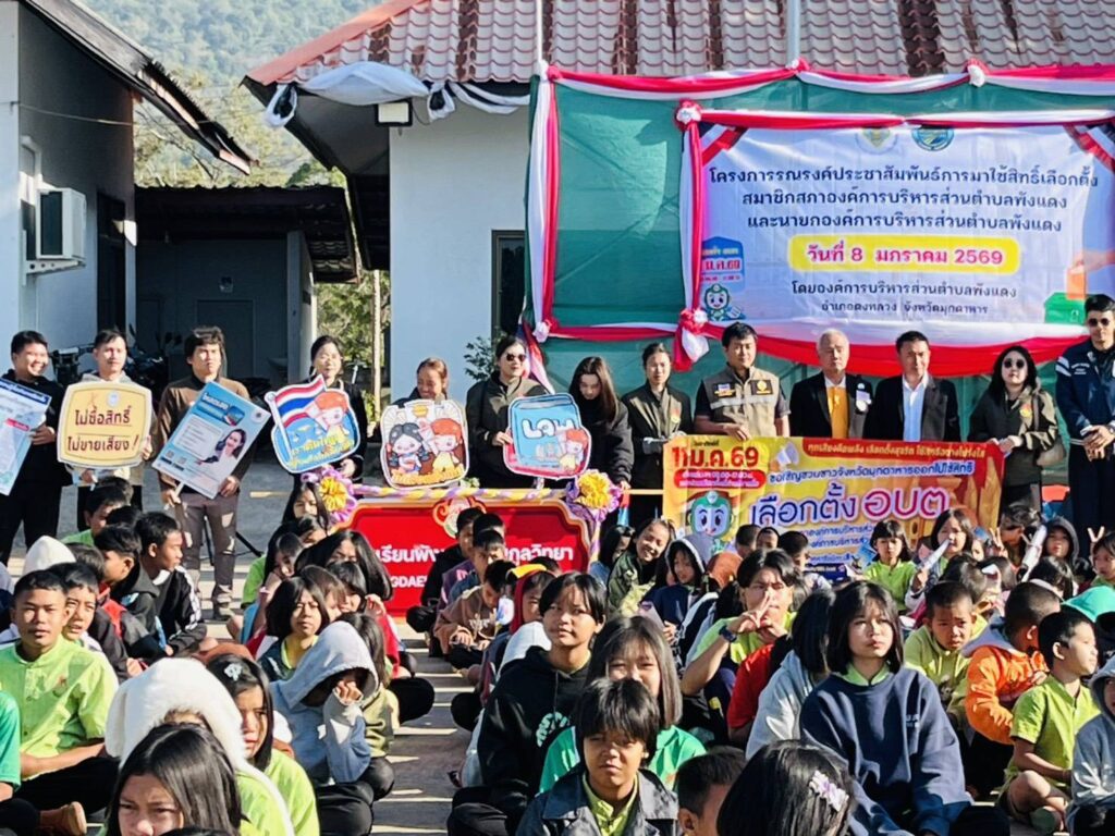มุกดาหาร/เมื่อวันที่ 8 มกราคม 2569 นายประเวท สุคำภา ประธาน กกต.อบต.พังแดง นายนิสสรณ์ ทรงแสงฤทธิ์ ปลัดองค์การบริหารส่วนตำบลพังแดง ผู้อำนวยการการเลือกตัง อบต.พังแดง พร้อมด้วยกำนัน ผู้ใหญ่บ้าน หัวหน้าส่วนราชการคณะครูนักเรียนโรงเรียนพังแดงอุดมกูลวิทยาร่วมเดินรณรงค์ประชาสัมพันธ์และเชิญชวนให้ประชาชนออกไปใช้สิทธิเลือกตั้งสมาชิกสภาองค์การบริหารส่วนตำบล(อบต.)และนายกองค์การบริหารส่วนตำบล ภายในหมู่บ้านในเขตตำบลพังแดง จำนวน 8 หมู่บ้าน ในวันอาทิตย์ ที่ 11 มกราคม 2569 เวลา 08.00 น. ถึง 17.00 น.| ซึ่งเป็นวันเลือกตั้ง