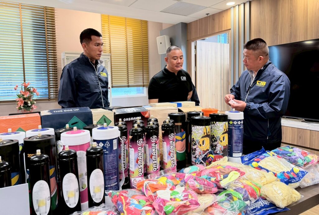 CIB บุกทลาย 2 แหล่งซุกซ่อน “แก๊สหัวเราะ” ยึดของกลางกว่า 200 กระบอก ตัดวงจรขายโจ๋-สถานบันเทิง