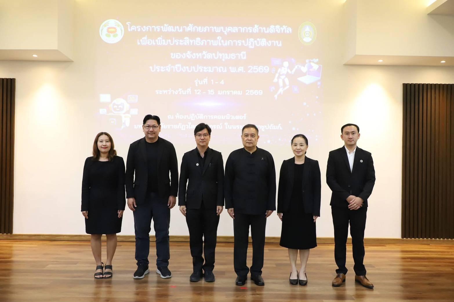 ปทุมธานี-จัดพัฒนาศักยภาพบุคลากรภาครัฐ ด้านดิจิทัล เรียนรู้การใช้ AI เพิ่มทักษะแห่งอนาคต และสมรรถนะที่จำเป็นต่อการปฏิบัติงานและความท้าทายในอนาคต วันนี้ (12 ม.ค.69) เวลา 10.00 น. นายเอกวิทย์ มีเพียร ผู้ว่าราชการจังหวัดปทุมธานี เป็นประธานเปิดโครงการพัฒนาศักยภาพบุคลากรด้านดิจิทัล เพื่อเพิ่มประสิทธิภาพในการปฏิบัติงานของจังหวัดปทุมธานี ประจำปีงบประมาณ พ.ศ. 2569 ซึ่งจัดขึ้นระหว่างวันที่ 12-15 มกราคม 2569 โดยมี นางสาววัชรินทร์ มิ่งขวัญรุ่งเรือง หัวหน้าสำนักงานจังหวัดปทุมธานี หัวหน้าส่วนราชการ ข้าราชการ เจ้าหน้าที่และหน่วยงานที่เกี่ยวข้องเข้าร่วมโครงการ ณ ห้องปฏิบัติการคอมพิวเตอร์ สำนักวิทยบริการ มหาวิทยาลัยราชภัฏวไลยอลงกรณ์ ในพระบรมราชูปถัมภ์ อำเภอคลองหลวง จังหวัดปทุมธานี ทั้งนี้ จังหวัดปทุมธานีมุ่งพัฒนาทักษะความรู้ความสามารถของบุคลากรจังหวัดปทุมธานี ในด้านเทคโนโลยีสารสนเทศและการสื่อสาร ทักษะด้านดิจิทัล พัฒนาทักษะการใช้เทคโนโลยีด้านปัญญาประดิษฐ์ หรือ AI มาเป็นเครื่องมือในการปฏิบัติงานได้อย่างมีประสิทธิภาพ และพัฒนาศักยภาพของบุคลากรให้มีทักษะแห่งอนาคต สอดคล้องกับการเปลี่ยนแปลงทางเทคโนโลยี และพัฒนาขีดความสามารถในการแข่งขัน อันจะก่อให้เกิดประโยชน์ต่อตนเองและองค์กร โดยจัดฝึกอบรมบุคลากรภาครัฐ ทั้งในสังกัดราชการบริหารส่วนภูมิภาค ส่วนราชการสังกัดราชการบริหารส่วนกลาง อำเภอ และองค์กรปกครองส่วนท้องถิ่นในจังหวัดปทุมธานี จำนวน 4 วัน วันละ 50 คน รวม 200 คน พร้อมทั้งมีการบรรยายพิเศษในหัวข้อ “นโยบายรัฐบาล และผลกระทบจากนวัตกรรมปัญญาประดิษฐ์ (AI) ต่อการเพิ่มประสิทธิภาพในการบริหารจัดการองค์กรภาครัฐ” โดยได้รับเกียรติจาก ผศ.ดร.ภิศักดิ์ กัลยาณมิตร รองอธิการบดีของมหาวิทยาลัยราชภัฏวไลยอลงกรณ์ ในพระบรมราชูปถัมภ์ เป็นผู้บรรยาย และในการอบรมเชิงปฏิบัติการเพื่อเพิ่มทักษะการปฏิบัติงานด้านดิจิทัล ได้รับการสนับสนุนวิทยากรจากมหาวิทยาลัยราชภัฏวไลยอลงกรณ์ ในพระบรมราชูปถัมภ์ เพื่อให้ผู้เข้ารับการอบรมสามารถใช้ AI ช่วยในการจัดทำแผนงานโครงการของหน่วยงานได้รวดเร็วและมีประสิทธิภาพมากยิ่งขึ้น สหรัฐ แก้วตา หน ข่าว ปทุมธานี รายงาน