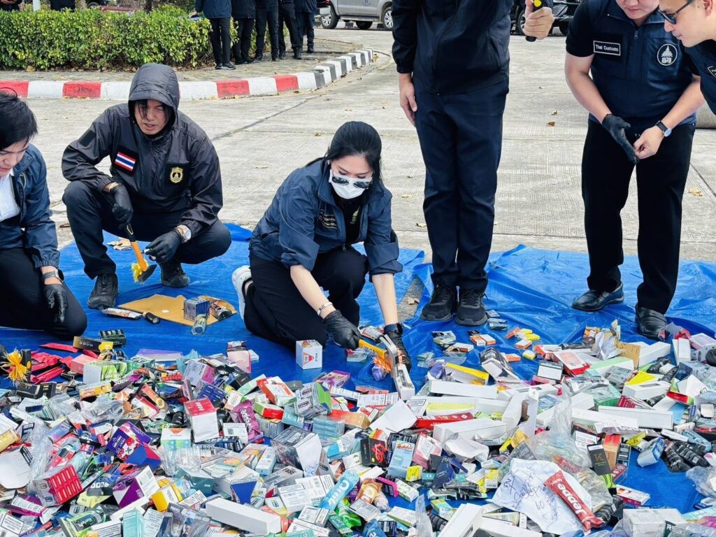 มุกดาหาร /เมื่อวันที่ 23 มกราคม 2569 นางสาวลลิตา อรรถพิมล เป็นประธานในพิธีทำลายของกลางที่คดีถึงที่สุดแล้ว โดยมีนางกนกวรรณ สุขศิริ นายด่านศุลกากรมุกดาหาร นางชนัยพร พูนน้อย นายด่านศุลกากรนครพนม นายอาชว์ พดด้วง นายด่านศุลกากรช่องเม็ก นายสุรัตน์ เรืองประยูร ผู้อำนวยการส่วนควบคุมทางศุลกากร ศภ.2 และผู้แทนกองสืบสวนและปราบปราม ร่วมกันทำลายของกลาง ประเภทบุหรี่ไฟฟ้า น้ำยาบุหรี่ไฟฟ้าและส่วนประกอบบุหรี่ไฟฟ้า ไพ่พลาสติก วิตามิน ผลิตภัณฑ์อาหารเสริม ยาเพิ่มสมรรถภาพทางเพศ เครื่องสำอาง ยากันยุง และขนมอบกรอบ มีจำนวนรวม 80 คดี รวมมูลค่า 3,381,694.90 บาท การทำลายโดยวิธีการบดทำลายเพื่อไม่ให้สามารถนำกลับมาใช้งานได้อีก ณ ลานหน้าอาคารด่านศุลกากรมุกดาหาร อำเภอเมืองมุกดาหาร จังหวัดมุกดาหาร