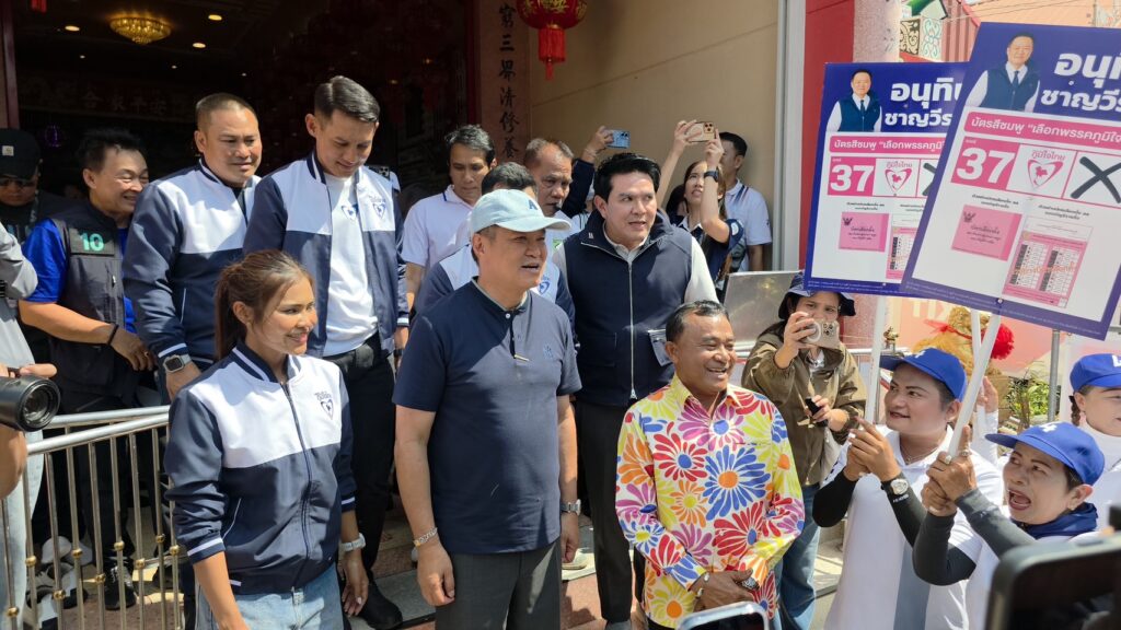 ปทุมธานี เสื้อแดงบุกโวย เสี่ยหนู รับชาญ เบี้ยว เข้าพรรค ขณะควง 8 ว่าที่ ส.ส.พรรคภูมิใจไทย ไหว้เซียนแปะวัดศาลเจ้า ลุยกินก๋วยเตี๋ยวโชว์ความติดดิน ผนึกกำลัง “ชาญ พวงเพ็ชร์ - นายกฯ เบี้ยว” มั่นใจปักธงภูมิใจไทยยกจังหวัด พ่อค้าแม่ค้าแห่ต้อนรับคึกคัก เมื่อเวลา 13.00 น. วันที่ 28 มกราคม 2569 ที่ ตลาดริมน้ำวัดศาลเจ้า อำเภอเมือง จังหวัดปทุมธานี นายอนุทิน ชาญวีรกูล หัวหน้าพรรคภูมิใจไทย นำทีมผู้สมัคร ส.ส. ปทุมธานี ทั้ง 8 เขต ลงพื้นที่พบปะพี่น้องประชาชนและบรรดาสมาชิกพรรค เพื่อสร้างความเชื่อมั่นก่อนการเลือกตั้งที่กำลังจะมาถึง จากนั้นนายอนุทินและคณะได้เข้าสักการะ “เซียนแปะโรงสี” (เซียนแปะโง้วกิมโคย) ณ วัดศาลเจ้า เพื่อขอพรให้ประสบความสำเร็จในการเลือกตั้งและขอให้บ้านเมืองสงบสุข บรรยากาศเป็นไปอย่างเป็นกันเอง โดยนายอนุทินได้ร่วมรับประทานก๋วยเตี๋ยวในตลาดริมน้ำแบบบริการตนเอง ท่ามกลางเสียงเชียร์และรอยยิ้มจากพ่อค้าแม่ค้าที่เข้ามาขอถ่ายรูปและให้การต้อนรับอย่างเนืองแน่น โดยการลงพื้นที่ครั้งนี้ยังมีบุคคลสำคัญในพื้นที่ร่วมขบวนอย่างพร้อมเพรียง นำโดย นายชาญ พวงเพ็ชร์ อดีตนายกองค์การบริหารส่วนจังหวัดปทุมธานี และ นายกฯ เบี้ยว-กฤษดา หลีนวรัตน์ อดีตนายกเทศมนตรีตำบลธัญบุรี ขณะที่ นายอนุทิน ชาญวีรกูล หัวหน้าพรรคภูมิใจไทย ลงพื้นที่ ได้มีปรากฏการณ์ที่สร้างความฮือฮา เมื่อมีชายสวมเสื้อแขนยาวสีน้ำเงิน บุกเข้ามากลางตลาดเพื่อแสดงพลัง ชูหมายเลข 9 ขนาดใหญ่ ที่มีชื่อดร.เชน ยศชนัน” แคนดิเดตนายกฯ เพื่อไทย พร้อมตะโกนลั่น เบอร์ 9 โดยระบุว่ารับไม่ได้กับการตัดสินใจย้ายขั้วการเมือง ของนายชาญ พวงเพ็ชร์ อดีตนายกองค์การบริหารส่วนจังหวัดปทุมธานี และ นายกฯ เบี้ยว-กฤษดา หลีนวรัตน์ อดีตนายกเทศมนตรีตำบลธัญบุรี มาอยู่กับพรรคภูมิใจไทย ชายคนดังกล่าว (ซึ่งมักปรากฏในรูปแบบหุ่นปูแดงตามเวทีเพื่อไทย) ได้เปิดเผยความในใจต่อสื่อมวลชนและประชาชนในพื้นที่อย่างดุเดือดว่า ลงทุนเองเพื่อศักดิ์ศรียืนยันว่าการมาครั้งนี้ไม่ได้มีใครจ้าง แต่ควักเงินลงทุนทำสัญลักษณ์เองทั้งหมด เพราะเป็น "นักแสดงออกเชิงสัญลักษณ์" ที่ต้องการสื่อสารความจริง พร้อมกล่าวหาว่านายชาญ พวงเพ็ชร์ ทรยศต่อความไว้วางใจของคนเสื้อแดงในจังหวัดปทุมธานี โดยระบุว่า "คิดถึงตอนที่หลอกคนเสื้อแดงมาเลือกนายก อบจ. แล้วสุดท้ายหักหลังประชาชน ย้ายไปอยู่พรรคอื่น" พรรคภูมิใจไทยจะเอาใครมาลงก็ได้ไม่ว่ากัน แต่การเอาคนที่ "หักหลังคนในท้องที่" และ "ขโมยคะแนนเสียง" จากสีเสื้อเดิมมาลงสมัครรับเลือกตั