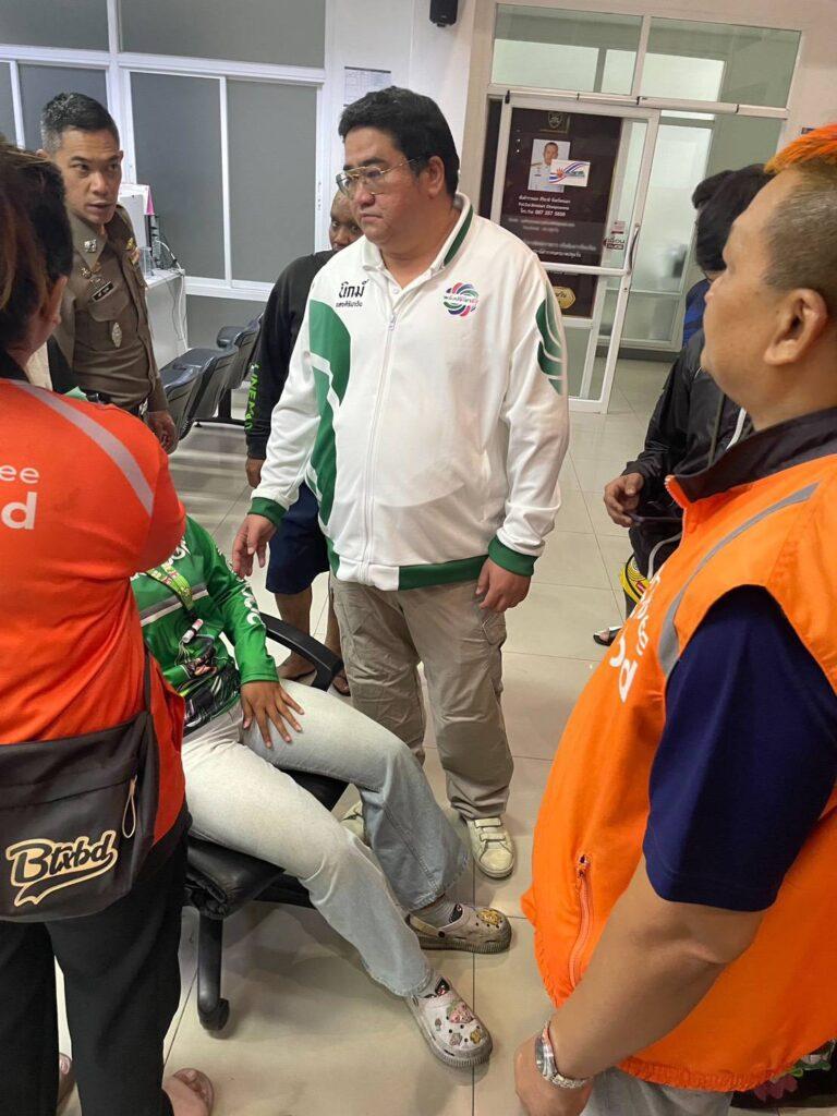 ด้าน นายพรศักดิ์ อายุ 54 ปี รปภ. ผู้ก่อเหตุ ให้การยอมรับว่าเป็นผู้ลงมือทำร้ายไรเดอร์สาวจริง โดยลำดับเหตุการณ์ในมุมของตนว่า ชนวนเหตุ เกิดจากการที่ไรเดอร์ไม่ปฏิบัติตามระเบียบการจอดรถส่งอาหาร จนเกิดการโต้เถียงกัน อ้างว่าถูกไรเดอร์สาวพูดจาหยาบคายใส่ จึงเกิดอารมณ์ชั่ววูบคว้าหมวกกันน็อกฟาดและรุมชุลมุน แต่จำไม่ได้ว่ามีการเตะเสยคางด้วยหรือไม่ ยอมรับว่าหากย้อนเวลากลับไปได้ จะควบคุมสติให้ดีกว่านี้