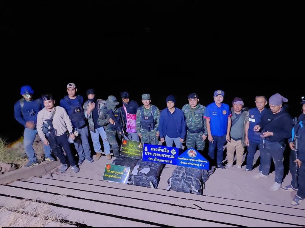มุกดาหาร/เมื่อวันที่ 29 มกราคม 2569 ภายใต้การอำนวยการของ พล.ร.ต.ณรงค์ เอมดี ผบ.นรข. นายวรญาณ บุญณราช ผู้ว่าราชการจังหวัดมุกดาหาร น.อ.แมนรัตน์ บุญสวัสดิ์ ผบ.นรข.เขตนครพนม โดย น.ท.โอรส พุทธโค หน.สน.เรือมุกดาหาร พร้อมหัวหน้าส่วนราชการ และหน่วยงานที่เกี่ยวข้อง แถลงข่าวการจับกุมยาเสพติดให้โทษประเภท 1 (ยาบ้า) จำนวน 2,800,000 เม็ด ภายหลังได้รับแจ้งจากสายลับซึ่งไม่ประสงค์ออกนาม (หวังสินบนรางวัลนำจับ) พร้อมกับประสานงานด้านการข่าว ว่าจะมีการลักลอบนำเข้าสิ่งของต้องสงสัยจากประเทศเพื่อนบ้าน ครั้งเวลาประมาณ 15.00 น. ของวันเดียวกัน ได้จัดชุดลาดตระเวนทางบกทำการลาดตระเวนซุ่มเฝ้าตรวจในบริเวณพื้นพื้นที่ บ.ป่งขาม ต.ป่งขาม อ.หว้านใหญ่ จ.มุกดาหาร กระทั่งเวลาประมาณ 23.30 น. ชุดลาดตะเวนฯ ตรวจพบเรือต้องสงสัยมีทิศทางแล่นมาจากฝั่ง สปป.ลาว เข้ามายังราชอาณาจักรไทย และตรวจพบคนบนเรือลำดังกล่าวประมาณ 3 คน โดยเมื่อเรือลำดังกล่าวเข้าเทียบแล้ว กลุ่มคนดังกล่าวได้ช่วยกันลำเลียงวัตถุคล้ายกระสอบต้องสงสัยจากเรือขึ้นสู่ฝั่งไทย เห็นดังนั้น ชุดลาดตระเวนฯ จึงเข้าแสดงตัวเป็นเจ้าหน้าที่ นรข. เพื่อขอเข้าตรวจสอบ เมื่อกลุ่มคนในข้างต้นทราบว่าเป็นเจ้าหน้าที่ นรข. จึงได้ทิ้งของกลางและเรือ กระโดดลงแม่น้ำโขงหลบหนีไปได้ หลังจากนั้นเจ้าหน้าที่จึงเข้าตรวจสอบพื้นที่ ในเบื้องต้นพบว่าเป็นกระสอบห่อหุ้มด้วยถุงพลาสติกสีดำ จำนวน 3 กระสอบ กระจายอยู่บริเวณริมฝั่งแม่น้ำโขงและมีกระสอบลักษณะเดียวกันวางอยู่บนเรืออีก จำนวน 4 กระสอบ เห็นดังนั้นชุดลาดตระเวนฯ จึงรายงานให้ผู้บังคับบัญชาทราบ รวมทั้งประสานหน่วยงานความมั่นคงในพื้นที่ เพื่อร่วมกันตรวจสอบวัตถุต้องสงสัยนั้น ซึ่งจากการตรวจสอบเบื้องต้น พบว่าเป็นยาเสพติดให้โทษประเภท 1 (ยาบ้า) จำนวน 7 กระสอบ ประมาณ 2,800,000 เม็ด และเรือกีบพร้อมเครื่องยนต์ติดท้าย จำนวน 1 ลำ จึงได้ทำการตรวจยึด และนำของกลางทั้งหมดมาที่สถานีเรือมุกดาหาร เพื่อทำการตรวจสอบโดยละเอียดต่อไป