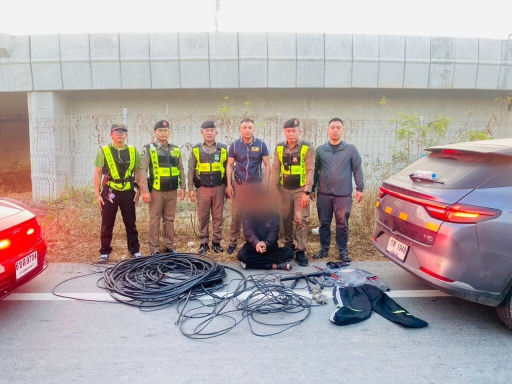 ตำรวจสอบสวนกลาง (CIB) รวบหนุ่มลอบตัดสายไฟต้นเหตุไฟดับบนทางหวงพิเศษ M81ตำรวจสอบสวนกลาง (CIB) โดย กองบังคับการตำรวจทางหลวง (บก.ทล.) ภายใต้การอำนวยการของ พล.ต.ท.ณัฐศักดิ์ เชาวนาศัย ผบช.ก., พล.ต.ต.พรศักดิ์ เลารุจิราลัย ผบก.ทล., พ.ต.อ.แมน เม่นแย้ม รอง ผบก.ทล. และ พ.ต.อ.เอกนิรุจฒิ์ วันสิริภักดิ์ รอง ผบก.บก.ทล., พ.ต.อ.กึกก้อง ดิศวัฒน์ ผกก.8 บก.ทล., พ.ต.ท.มณสิช ชุนดี สวญ.ส.ทล.4 กก.8 บก.ทล. และ ว่าที่ พ.ต.ท.บัณฑิต นวลปาน สว.ส.ทล.4 กก.8 บก.ทล.ตำรวจทางหลวง ส.ทล.4 กก.8 บก.ทล.(มอเตอร์เวย์ M81) นำโดย ร.ต.อ.พชร ทองสาริเจริญ รอง สว.ฯ ส.ทล.4 กก.8บก.ทล., ร.ต.ต.เปรมวิศุทธิ์ พัฒนอติพงศ์, ร.ต.ต.ธนาธิป จิตรปรีดา, ร.ต.ต.สุภิศักดิ์ ทองพันธ์ รอง สว.ปฏิบัติราชการ ส.ทล.4 กก.8 บก.ทล.,จ.ส.ต.โสนิล จันทร์พลงาม, ส.ต.ท.ถาวร จันทร์เพชร ผบ.หมู่ ส.ทล.4 กก.8 บก.ทล.จับกุมผู้ต้องหา นายธีรพงษ์ฯ อายุ 21 ปีโดยกล่าวหาว่ากระทำผิดฐาน “ร่วมกันลักทรัพย์ที่ใช้หรือมีไว้เพื่อสาธารณประโยชน์ในเวลากลางคืนโดยทำอันตรายสิ่งกีดกั้นสำหรับคุมครองบุคคลหรือทรัพย์หรือโดยผ่านสิ่งเช่นว่านั้นเข้าไปด้วยประการใดๆโดยใช้ยานพาหนะเพื่อสะดวกแก่การกระทำความผิดหรือการพาทรัพย์นั้นไปหรือรับของโจร”ของกลาง1. รถจักรยานยนต์ ยี่ห้อ ฟีโน สีดำ (ไม่มีกุญแจ) จำนวน 1 คัน2. สายไฟ ขนาด 1×10 ขนาด SQ.MM. ความยาวประมาณ 27 เมตร จำนวน 1 เส้น 3. สายไฟ ขนาด 1×10 ขนาด SQ.MM. ความยาวประมาณ 22 เมตร จำนวน 1 เส้น4. สายไฟ ขนาด 4×16 ขนาด SQ.MM. ความยาวประมาณ 29 เมตร จำนวน 1 เส้น5. สายไฟ ขนาด 4×16 ขนาด SQ.MM. ความยาวประมาณ 26 เมตร จำนวน 1 เส้น6. กรรไกรตัดสายเคเบิ้ล(สายไฟ) ขนาด 24 นิ้ว จำนวน 1 อัน7. อีเตอร์ อีติ๊ก หัวขุดดิน จำนวน 1 อัน8. เหล็กงัดยางรถขนาด 30 เซนติเมตร จำนวน 1 อัน9. กางเกงยาวสีดำที่ใช้ในการห่ออุปกรณ์ลักสายไฟ สถานที่จับกุม บริเวณถนนหลวงพิเศษระหว่างเมือง หมายเลข 81 (บางใหญ่ – กาญจนบุรี) หมู่ 10 ต.มาบแค อ.เมืองนครปฐม จ.นครปฐม พฤติการณ์ ในวันเวลาที่จับกุม เจ้าหน้าที่ตำรวจทางหลวง ส.ทล.4 กก.8 บก.ทล. ได้ออกตรวจในพื้นที่รับผิดชอบเพื่อป้องกันเหตุอาชญากรรมและลักสายไฟในทางหลวงพิเศษ M81 ได้รับแจ้งศูนย์ควบคุมดูแลการจราจร TOC (Traffic Operation Center) ว่ามีบุคคล 2 คน อยู่บริเวณถนนหลวงพิเศษระหว่างเมือง หมายเลข 81 (บางใหญ่ – กาญจนบุรี) ช่วง ทางลงด่านนครปฐมฝั่งตะวันออก STA. กม. 1+400 Interchange P04 to Local road ทางลงเชื่อมกับถนนทางหลวงหมายเลข 375 มุ่งหน้าดอนตูม กำลังร่วมกันขโมยตัดสายไฟที่เสาไฟส่องสว่างบริเวณริมถนน ทางลงด่านนครปฐมฝั่งตะวันออก STA. กม. 1+400 Interchange P04 to Local road เชื่อมกับถนนทางหลวงหมายเลข 375 มุ่งหน้าดอนตูม จึงเดินทางไปตรวจสอบบริเวณดังกล่าวโดยทันที เมื่อไปถึงบริเวณดังกล่าว พบกลุ่มบุคคลจำนวน 2 คน ได้กำลั