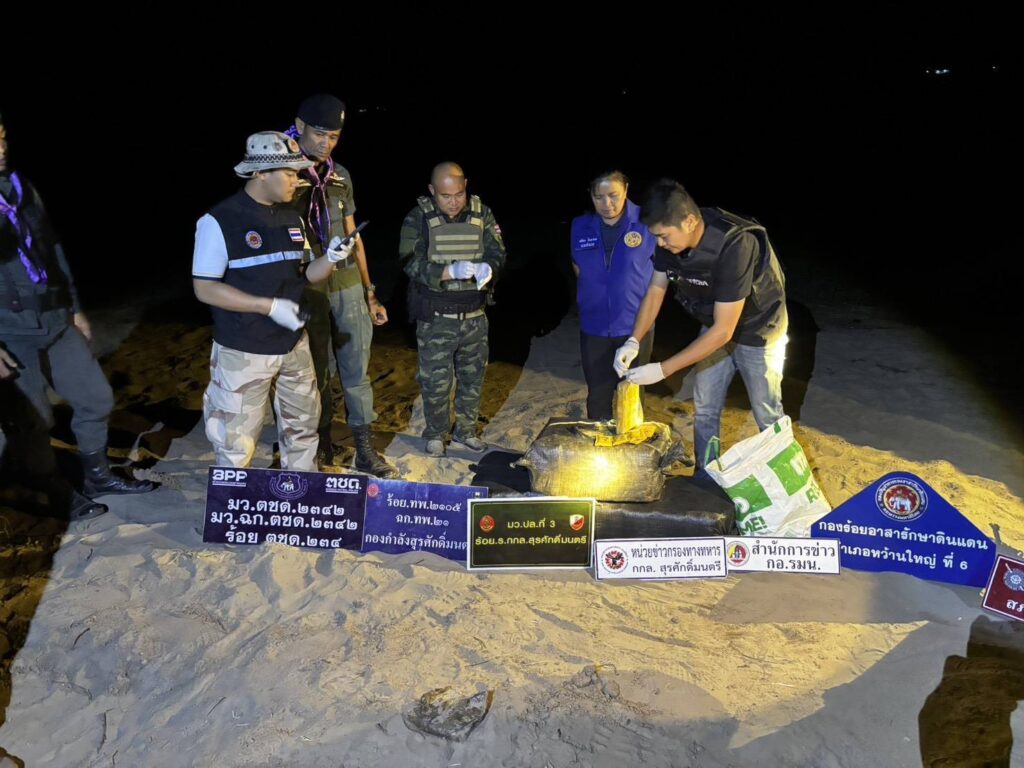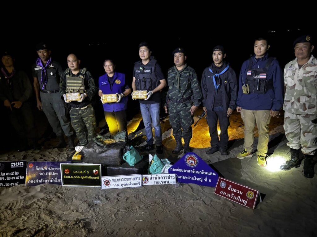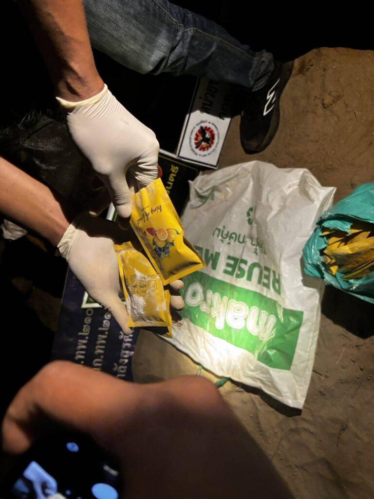 เมื่อวันที่ 10 มีนาคม 2569 ร้อย.ร.กกล.สุรศักดิ์มนตรี ได้รับแจ้งข่าวจาก ชปข.7 ว่าจะมีการลำเลียงยาเสพติด ในพื้นที่ ต.ชะโนด อ.หว้านใหญ่ จ.มุกดาหาร จึงได้จัดกำลังพล บูรณาการร่วมกับ สภ.หว้านใหญ่, ชฝด.3 นฝด.21, ฝ่ายปกครอง อ.หว้านใหญ่, สน.เรือมุกดาหาร เฝ้าตรวจ บริเวณริมฝั่งแม่น้ำโขง ในพื้นที่ บ.ชะโนด ต.ชะโนด อ.หว้านใหญ่ จ.มุกดาหาร จนกระทั้งเวลาประมาณ 20.00 น.ของวันที่ 10 มี.ค 69 เจ้าหน้าที่เฝ้าตรวจสังเกตุเห็นมีรถยนต์ขับลงไปยังหาดมโนภิรมย์ และสังเกตุเห็นเหมือนมีคนกำลังแบกกระสอบลำเลียงขึ้นมาจากเรือ เจ้าหน้าที่จึงแสดงตัวเข้าตรวจสอบ บุคคลดังกล่าวได้ทิ้งกระสอบ อาศัยความมืดและความชำนาญในพื้นที่ หลบหนีไป พร้อมทั้งรถยนต์คันดังกล่าวก็ได้ขับหนีขึ้นจากหาดและหลบหนีเข้าไปในหมู่บ้าน จากการเข้าตรวจสอบ พบกระสอบสีดำภายในบรรจุยาเสพติด(ยาบ้า) จำนวน 3 กระสอบ (200,000/กระสอบ รวมจำนวนประมาณ 600,000 เม็ด) และถุงพลาสติกสีขาว Happy water จำนวน 100 ซอง ตกอยู่ที่พื้นบนหาด เจ้าหน้าที่จึงได้ร่วมบันทึกภาพที่เกิดเหตุไว้เป็นหลักฐาน หลังจากนั้นได้นำของกลางทั้งหมด ไปเก็บรักษาไว้ที่ ฐาน บก.ร้อย. ร้อย.ร.กกล.ฯ เพื่อดำเนินการตามขั้นตอนทางกฎหมายต่อไป