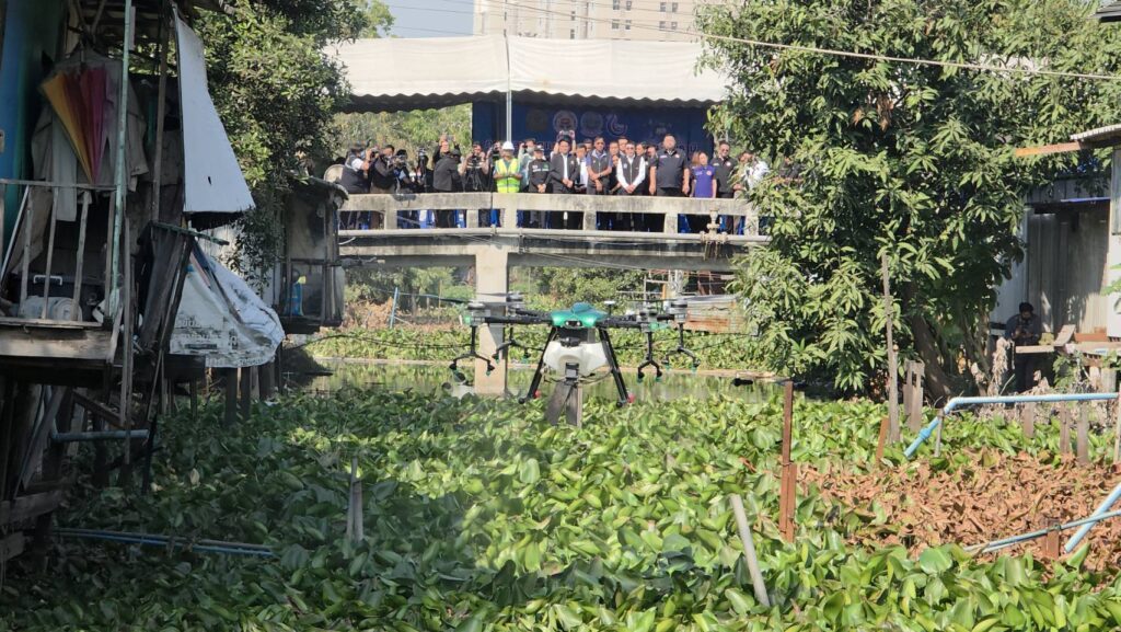 โดยตลอดการทดลองได้บันทึกสถิติตลอด 30 วันที่มีการเปลี่ยนแปลง ซึ่งช่วงเริ่มต้น (4 ก.พ. 69) ผักตบชวาเขียวหนาทึบสะสมแน่นคลอง ขัดขวางการไหลเวียนของน้ำและเป็นแหล่งสะสมเชื้อโรค หลังพ่นสวพ.62 (ชป.1) ด้วยโดรน ผ่านไป 30-35 วันพบว่า วัชพืชเริ่มย่อยสลายกลายเป็นโมเลกุลขนาดเล็ก ซึ่งกลายเป็นอาหารของสัตว์น้ำตามธรรมชาติยังทำให้ค่าออกซิเจนในน้ำเพิ่มสูงขึ้น น้ำใสขึ้น และไร้กลิ่นเหม็นจากการเน่าเสีย