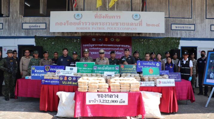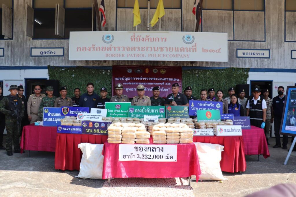 มุกดาหาร/เมื่อวันที่ 19 มีนาคม 2569 สืบเนื่องจาก ร้อย ตชด.234 มุกดาหาร ได้ทำการตรวจยึด ยาเสพติดให้โทษประเภท 1 (ยาบ้า) จำนวน 3,232,000 เม็ด เมื่อวันที่ 12 พฤศจิกายน 2568 เวลา 12.00 น. บริเวณเชิงเขา บ.ตาเปอะ ต.บ้านค้อ อ.คำชะอี จ.มุกดาหาร ต่อมา เจ้าหน้าที่ชุดปฏิบัติการด้านการข่าว ร้อย ตชด.234 ได้ทำการสืบสวนขยายผลรวบรวมพยานหลักฐานจนสามารถจับกุมผู้กระทำผิดได้ 2 ราย โดยแจ้งข้อกล่าวหาแก่ผู้ถูกจับทราบว่ากระทำผิดฐาน “ร่วมกันจำหน่ายยาเสพติดให้โทษประเภท 1(เมทแอมเฟตามีนหรือยาบ้า) โดยการมีไว้ในครอบครองเพื่อจำหน่าย อันเป็นการกระทำเพื่อการค้า อันก่อให้เกิดการแพร่กระจายในหมู่ประชาชน และก่อให้เกิดผลกระทบต่อความมั่นคงของรัฐหรือความปลอดภัยของประชาชนทั่วไป และร่วมกันมีเครื่องกระสุนปืนไว้ในครอบครองโดยไม่ได้รับอนุญาตจากนายทะเบียน” จากนั้นได้ส่งตัวผู้ต้องหาทั้ง 2 ราย ส่งพนักงานสอบสวน สภ.บ้านค้อ อ.คำชะอี จ.มุกดาหาร ดำเนินคดีตามกฎหมายต่อไป