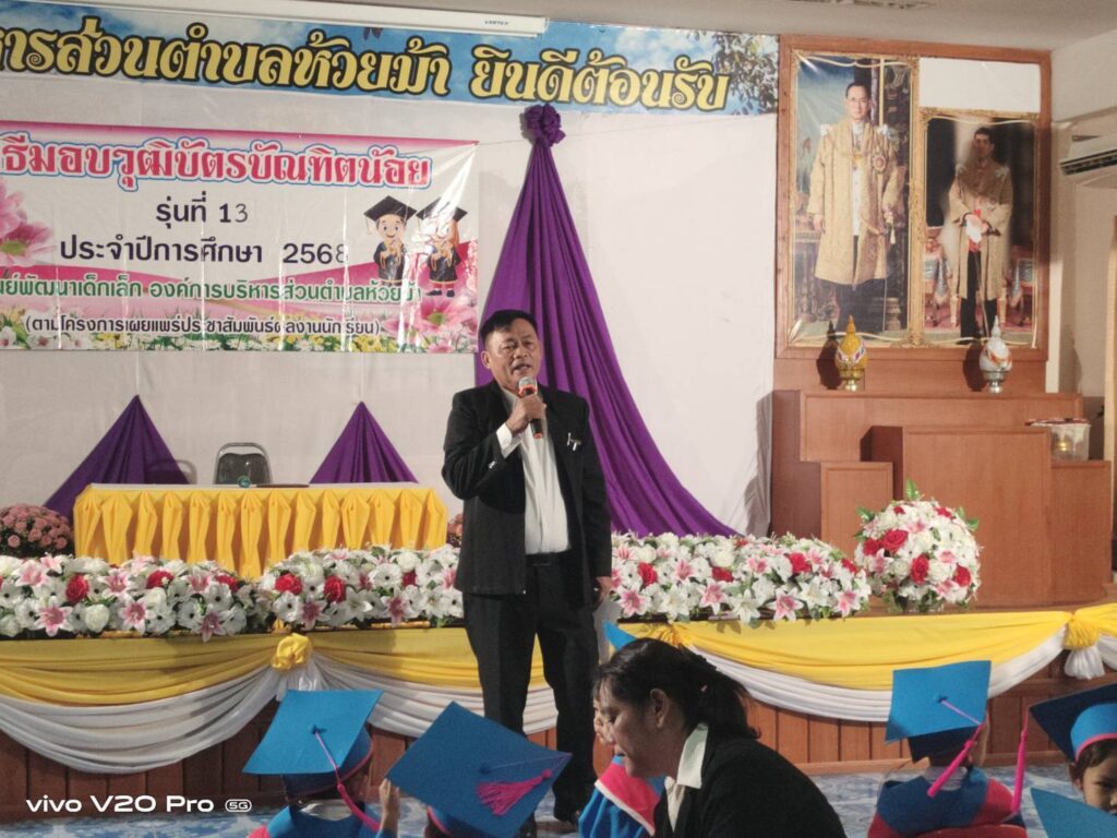 หนุนเสริม ! “นายกมนู มะหิงษา” อบต.ห้วยม้า ปธ.พิธีมอบวุฒิบัตรบัณฑิตน้อย รุ่นที่ 13 และเตรียมปรับปรุงหลังคาอาคารเรียน