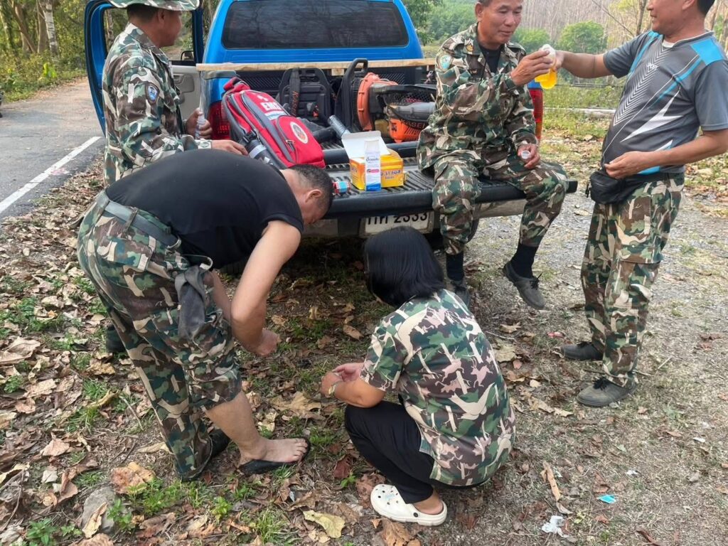 ทางเจ้าหน้าที่ชุดลาดตระเวนหลายชุดพร้อมด้วยราษฎรอาสาเฝ้าระวังไฟป่า ได้กระจายกำลังเข้าตรวจสอบและควบคุมสถาน