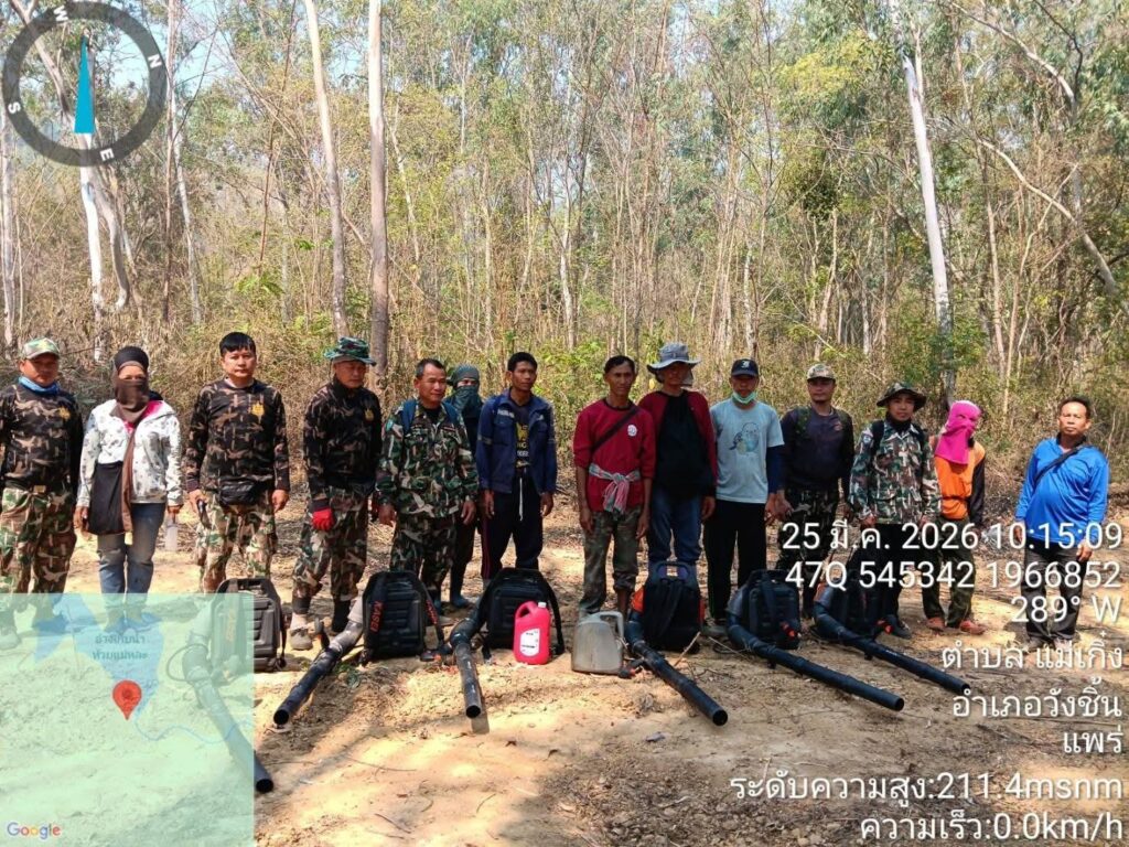 •จังหวัดแพร่ : พบจุดวิกฤตในตำบลสรอย อำเภอวังชิ้น รวม 7 จุด (จากดาวเทียม 5 จุด และเจ้าหน้าที่ตรวจพบเพิ่มเติมระหว่างลาดตระเวน 2 จุด) ชุดลาดตระเวนที่ 2, 5 และ 6 พร้อมเวรส่วนกลาง เร่งทำแนวกันไฟในพื้นที่ป่าเบญจพรรณและป่าเต็งรัง