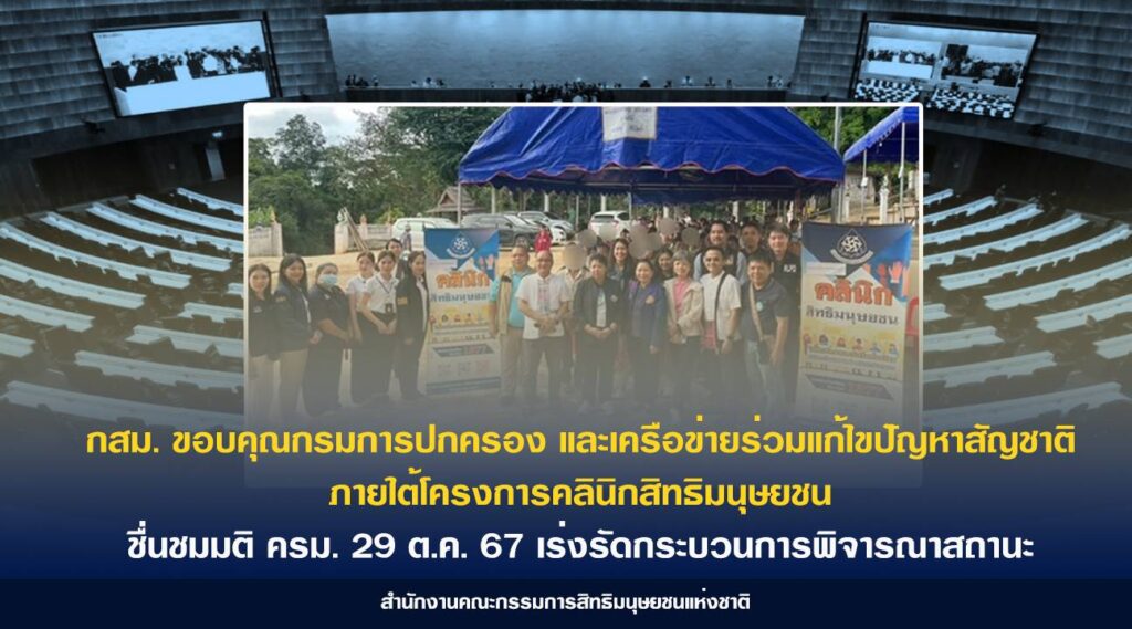 กสม. ขอบคุณกรมการปกครอง และภาคส่วนที่เกี่ยวข้องร่วมแก้ไขปัญหาสัญชาติภายใต้โครงการคลินิกสิทธิมนุษยชน ชื่นชมมติ ครม. 29 ตุลาคม 2567 เร่งรัดกระบวนการพิจารณาสถานะ