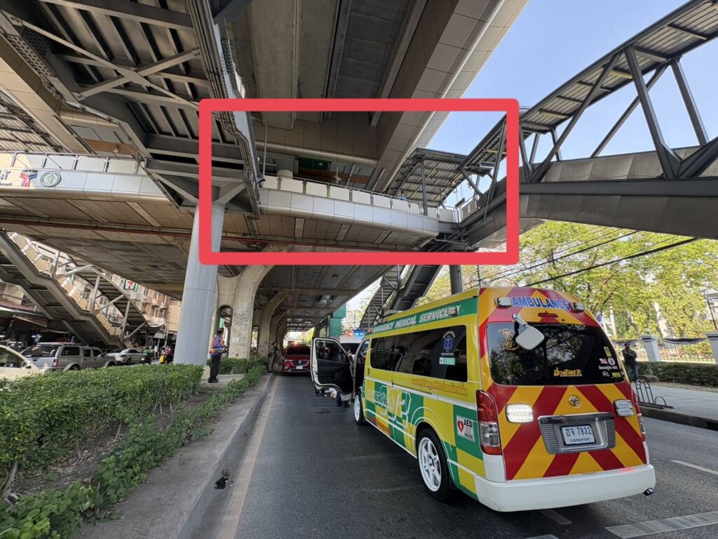 สลด! หญิงนิรนามดิ่งสถานีรถไฟฟ้ากรมป่าไม้ ร่างกระแทกพื้นดับคาถนนพหลโยธิน เมื่อเวลา 14.50 น. วันที่ 11 เมษายน 2569 ร.ต.อ. (พนักงานสอบสวน) สน.บางเขน รับแจ้งเหตุมีบุคคลพลัดตกจากที่สูงเสียชีวิต บริเวณใต้สถานีรถไฟฟ้าบีทีเอสกรมป่าไม้ ถนนพหลโยธินฝั่งขาเข้า แขวงลาดยาว เขตจตุจักร กรุงเทพฯ จึงรายงานผู้บังคับบัญชาทราบก่อนรุดไปตรวจสอบที่เกิดเหตุพร้อมด้วย เจ้าหน้าที่จราจร สน.บางเขน, แพทย์นิติเวชโรงพยาบาลภูมิพล และอาสาสมัครมูลนิธิร่วมกตัญญู ที่เกิดเหตุอยู่บนถนนพหลโยธินฝั่งขาเข้า ในช่องทางเดินรถขวาสุด (เลนที่ 3) บริเวณหน้ากรมวิทยาศาสตร์ทหารบก พบร่างผู้เสียชีวิตเป็นหญิงไม่ทราบชื่อและนามสกุล สภาพศพนอนหงาย สวมเสื้อผ้าในชุดลำลอง มีบาดแผลฉกรรจ์ที่บริเวณศีรษะและกระดูกผิดรูปหลายแห่งจากการกระแทกอย่างรุนแรง เจ้าหน้าที่จึงทำการปิดกั้นการจราจรบางส่วนเพื่อป้องกันอุบัติเหตุซ้ำซ้อนและรักษาสภาพพื้นที่ จากการสอบสวน นายธนกร เหนี่ยวพันธุ์ อายุ 28 ปี พยานผู้เห็นเหตุการณ์ซึ่งขับรถยนต์ยี่ห้อ MG สีแดง หมายเลขทะเบียน 2ขห 6738 กรุงเทพมหานคร ให้การว่า ขณะที่ตนกำลังขับรถมุ่งหน้าไปตามเส้นทางพหลโยธินขาเข้า เมื่อมาถึงจุดเกิดเหตุใต้สถานีรถไฟฟ้า ได้สังเกตเห็นร่างของบุคคลร่วงหล่นมาจากด้านบนของสถานีลงสู่พื้นถนนต่อหน้าต่อตา ตนจึงรีบหยุดรถและแจ้งเจ้าหน้าที่ตำรวจทันที ด้านเจ้าหน้าที่ตำรวจเปิดเผยว่า จากการตรวจสอบหลักฐานเบื้องต้น โดยเฉพาะภาพจากกล้องหน้ารถของพลเมืองดีที่บันทึกภาพขณะเกิดเหตุไว้ได้พอดี ยืนยันว่าร่างของผู้เสียชีวิตลอยละลิ่วลงมาจากโครงสร้างสถานีรถไฟฟ้า BTS โดยตรง "โดยเน้นย้ำว่าเหตุการณ์ที่เกิดขึ้นไม่มีการเฉี่ยวชนกับรถยนต์คันใดบนท้องถนน" รถที่แล่นอยู่ในขณะนั้นสามารถเบรกได้ทันท่วงที อย่างไรก็ตาม ขณะนี้ทางพนักงานสอบสวน สน.บางเขน อยู่ระหว่างการประสานงานกับเจ้าหน้าที่ฝ่ายอาคารสถานีรถไฟฟ้าบีทีเอส เพื่อขอตรวจสอบกล้องวงจรปิด (CCTV) บนชั้นชานชาลาและทางเดินสกายวอล์กอย่างละเอียด เพื่อหาข้อสรุปว่าผู้เสียชีวิตพลัดตกลงมาด้วยอุบัติเหตุ หรือเป็นการตั้งใจกระโดดลงมาเอง รวมถึงเร่งตรวจสอบเอกสารในตัวผู้ตายเพื่อระบุรูปพรรณสันฐานและติดต่อญาติมารับศพไปประกอบพิธีทางศาสนาต่อไป