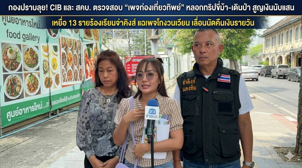 เหยื่อร้องกองปราบ ถูกเพจท่องเที่ยว "ทิพย์" หลอกขี่ม้า-เดินป่า ผู้เสียหายโผล่เพียบ หลังนัดคืนเงินแล้วเบี้ยวซ้ำซ้อน เมื่อเวลา 11.45 น. วันที่ 23 เม.ย. 69 ที่ บริเวณริมฟุตบาทหน้าแดนเนรมิตเก่า "จ่าคิงส์ แตงทิม สะพานใหม่" ได้นำ น้องฟ้า ลูกสาว"จ่ายันต์" อดีตทหารอากาศ สังกัด อย. พร้อมด้วยกลุ่มผู้เสียหาย เดินทางเข้าร้องเรียนต่อพนักงานสอบสวน กองบังคับการปราบปราม เพื่อขอความเป็นธรรมกรณีถูกเพจนำเที่ยวชื่อดังหลอกจัดทริปขี่ม้าและเดินป่า "ทิพย์" เชิดเงินหนีรวมมูลค่าความเสียหายหลายแสนบาท เหตุการณ์เกิดขึ้นเมื่อ "คุณฟ้า" ลูกสาวของจ่ายันต์ ได้จองทริปเทรลขี่ม้าที่จังหวัดลพบุรีผ่านเพจเฟซบุ๊กชื่อดัง สำหรับการเดินทางวันที่ 10-11 ม.ค. 2569 โดยได้โอนเงินค่าทริปเต็มจำนวนรวม 12,000 บาท ไปตั้งแต่วันที่ 20 พ.ย. 2568 กระทั่งถึงวันนัดหมาย (10 ม.ค. 2569) ผู้เสียหายทั้งหมด 6 คน เดินทางไปถึงฟาร์มม้าที่จังหวัดลพบุรี แต่กลับได้รับคำตอบที่น่าตกใจจากทางฟาร์มว่า "ไม่ได้รับการประสานงานและไม่มีเงินโอนมาจากทางเพจ" ทำให้ไม่สามารถให้บริการขี่ม้าได้ กลุ่มผู้เสียหายจึงรู้ตัวว่าถูกหลอกและเข้าแจ้งความลงบันทึกประจำวันไว้ที่ สภ.เมืองลพบุรี ในวันเดียวกัน เจ้าของเพจได้เจรจาและรับปากว่าจะคืนเงินทั้งหมดให้ภายในวันที่ 14 ม.ค. 2569 แต่เมื่อถึงกำหนดกลับเงียบหาย ไม่สามารถติดต่อได้ กลุ่มผู้เสียหายจึงเริ่มเดินหน้าพึ่งพากระบวนการยุติธรรมในหลายช่องทาง ดังนี้ -15 ม.ค. 2569 ยื่นเรื่องร้องเรียนต่อสำนักงานคณะกรรมการคุ้มครองผู้บริโภค (สคบ.) -26 ม.ค. 2569 สคบ. แจ้งประสานส่งเรื่องต่อไปยังกรมการท่องเที่ยว -20 ก.พ. 2569 ผู้เสียหายติดตามเรื่องด้วยตนเองจนพบเจ้าหน้าที่นิติกร ซึ่งระบุว่าได้เรียกเจ้าของเพจมาพบแล้ว โดยทางเพจขอเลื่อนการจ่ายเงินคืนไปเป็นวันที่ 23 มี.ค. 2569 -23 มี.ค. 2569 - ปัจจุบันเมื่อถึงกำหนดนัดครั้งล่าสุด เจ้าของเพจยังคงนิ่งเฉย ไม่มีการคืนเงินและไม่มีการติดต่อกลับใดๆ จากการรวบรวมข้อมูลของกลุ่มผู้เสียหายพบว่า เพจดังกล่าวมักใช้รูปแบบการหลอกลวงซ้ำๆ ทั้งทริปขี่ม้า ทริปเดินป่า และทริปท่องเที่ยวเชิงผจญภัยอื่นๆ "ตอนนี้รวบรวมผู้เสียหายที่โดนโกงในลักษณะเดียวกันได้แล้วถึง 13 คน คาดว่าน่าจะมีผู้เสียหายนับร้อยราย ซึ่งทุกคนถูกหลอกให้รอและเลื่อนนัดวันคืนเงินวนไปเรื่อยๆ จนหมดความหวัง จึงต้องมาร้องขอให้จ่าคิงส์พาเข้าแจ้งความที่กองปราบในวันนี้" คุณฟ้า ตัวแทนผู้เสียหายระบุ ด้าน จ่าคิงส์ แตงทิม ฝากเตือนถึงประชาชนที่ชื่นชอบการท่องเที่ยวเชิงเอ็กซ์ตรีม ให้ตรวจสอบเลขใบอนุญาตประกอบธุรกิจนำเที่ยวจาก