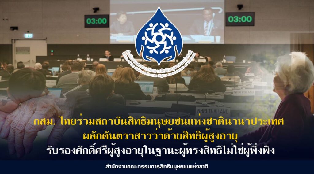 กสม. ไทยร่วมสถาบันสิทธิมนุษยชนแห่งชาตินานาประเทศ ผนึกกำลังผลักดันตราสารระหว่างประเทศว่าด้วยสิทธิผู้สูงอายุ รับรองศักดิ์ศรีผู้สูงอายุในฐานะผู้ทรงสิทธิไม่ใช่ผู้พึ่งพิง