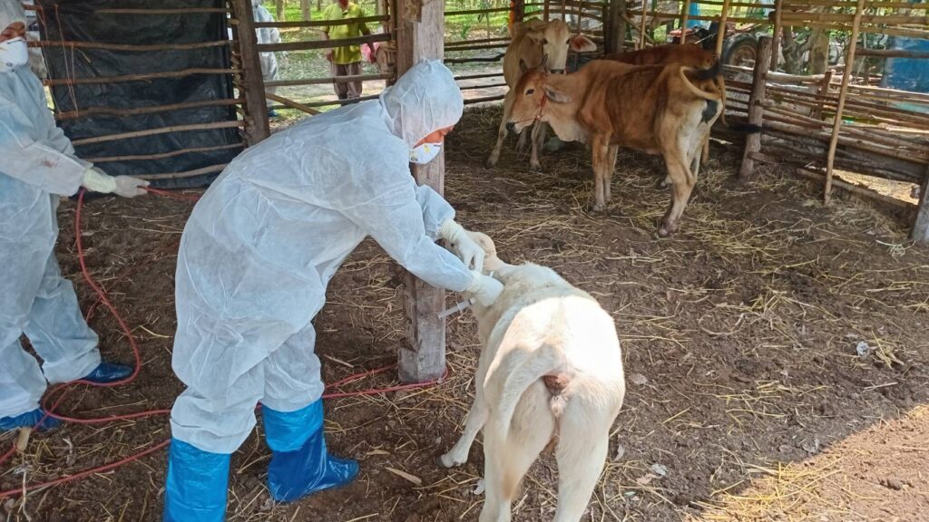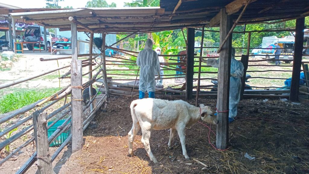 นายอดิชาติ ชูคำสัตย์ ปศุสัตว์อำเภอดอนตาล จังหวัดมุกดาหาร เปิดเผยว่า ในส่วนของการควบคุมโรคในสัตว์รัศมี 5 กิโลเมตร จากจุดที่มีการชำแหละวัว เจ้าหน้าที่ได้ฉีดยาปฏิชีวนะในโคพื้นที่เสี่ยง 124 ตัว ขณะที่มีจํานวนโคที่ต้องได้รับวัคซีนป้องกันโรค 1,222 ตัว ที่ผ่านมาได้ดำเนินการไปแล้วประมาณร้อยละ 50 โดยในวันนี้จากระบบเจ้าหน้าที่ออกดำเนินการวัคซีนป้องกันโรคให้ครบทั้งหมด นอกจากนี้ยังได้ดำเนินการพ่นน้ำยาฆ่าเชื้อบริเวณสถานที่เสี่ยงทุกจุดแล้ว ส่วนผลการตรวจหาเชื้อจากชิ้นเนื้อวัวและหมูที่เจ้าหน้าที่ได้เก็บตัวอย่างจากตู้เย็นบ้านผู้เสียได้ส่งไปตรวจที่ศูนย์วิจัยและพัฒนาการสัตวแพทย์ภาคตะวันออกเฉียงเหนือตอนบนคาดว่าผลตรวจจะออกไปช่วงบ่ายของวันนี้