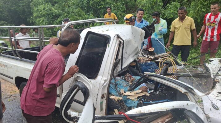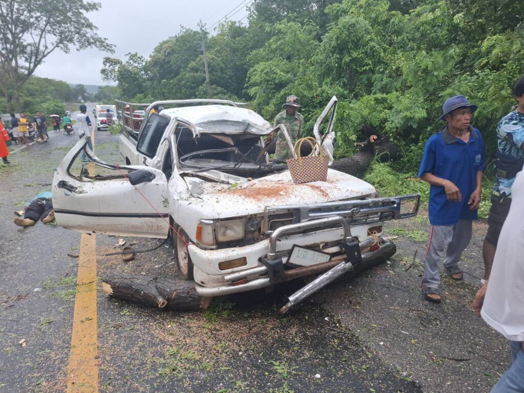 มุกดาหาร ต้นไม้ริมถนนโค่นหักทับรถยนต์ เสียชีวิต 2 ราย บาดเจ็บ 1 ราย มุกดาหาร/เมื่อวันที่ 26 พ.ค. 68 เวลา 08.00 น. นายขจรศักดิ์ คำปาน ปลัดอำเภอนิคมคำสร้อย ได้รับแจ้งจากพลเมืองดีว่ามีเหตุต้นไม้ริมถนนโค่นหักทับรถยนต์กระบะทำให้มีผู้เสียชีวิต 2 ราย บาดเจ็บ 1ราย ที่ถนนสาธารณะสายบ้านหนองนกเขียน – ตำบลโชคชัย จึงรายงานให้ผู้บังคับบัญชาทราบ หลังจากนั้นได้ลงพื้นที่ตรวจสอบร่วมกับเจ้าหน้าที่ตำรวจ สภ. นิคมคำสร้อย เจ้าหน้าที่กู้ภัย เจ้าหน้าที่โรงพยาบาลและหน่วยงานที่เกี่ยวข้อง ลงพื้นที่บริเวณเกิดเหตุทางหลวงชนบท สาย มห 3022 บริเวณทางเข้าบ้านหนองนกเขียน ตำบลร่มเกล้า อำเภอนิคมคำสร้อย จังหวัดมุกดาหาร ซึ่งบริเวณที่เกิดเหตุพบต้นไม้ขนาดใหญ่ริมถนนโค่นหักทับรถยนต์กระบะยี่ห้อ toyota สีขาว ทะเบียน บฉ 3270 มุกดาหาร สภาพด้านหน้ายุบเสียหาย ภายในรถพบผู้เสียชีวิต 2 รายและบาดเจ็บ 1 ราย ส่วนผู้บาดเจ็บพลเมืองดีได้นำส่งโรงพยาบาลนิคมคำสร้อย ทราบชื่อผู้เสียชีวิตคือ นายสุพจน์ ภูมิลา อายุ 54 ปี (บิดา)และนางทองเลข ภูมิลา อายุ 49 ปี (ภรรยา)ผู้บาดเจ็บคือนางสาวศิริรัตน์ ภูมิลา อายุ 17 ปี (บุตร) อยู่บ้านเลขที่ 117 หมู่ที่ 4 ตำบลร่มเกล้า อำเภอนิคมคำสร้อย จังหวัดมุกดาหาร ซึ่งบุคคลทั้ง 3 เป็นคนในครอบครัวเดียวกันได้เดินทางออกมาจากบ้านเพื่อจะไปทำธุระที่ตัวอำเภอนิคมคำสร้อย จังหวัดมุกดาหาร แต่ขณะขับรถยนต์กระบะออกมาเกิดเหตุต้นไม้ริมถนนโค่นหักทับเสียชีวิตและบาทเจ็บดังกล่าว ไกรสมุทร นามโพธิ์ไทร /รายงานจากมุกดาหาร 081-0501177