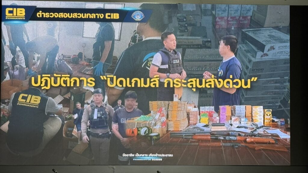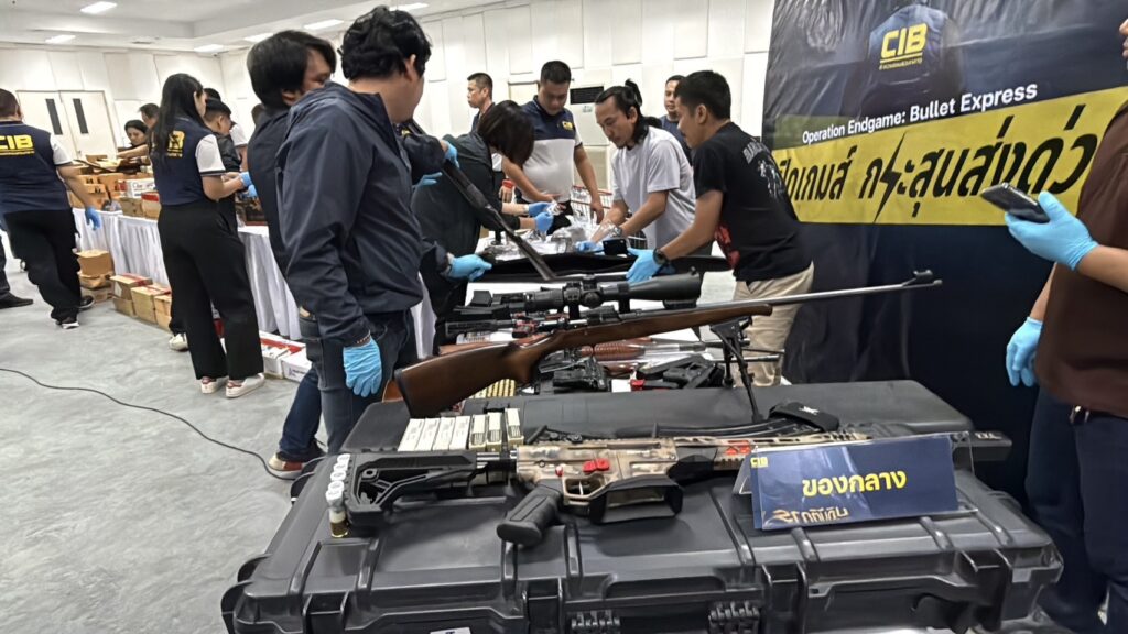 ตํารวจสอบสวนกลาง (CIB) Operation Endgame : Bullet Express "ปิดเกมส์ กระสุนส่งด่วน" ตามนโยบายของ พล.ต.อ. ธนา ชูวงศ์ รอง ผบ.ตร. ซึ่งรับผิดชอบงานสืบสวนสอบสวน ศูนย์ปราบปรามผู้มีอิทธิพล มือปืนรับจ้าง และผู้ร้ายสำคัญ สำนักงานตำรวจแห่งชาติ (ศปอร.ตร.ตร.) โดย พล.ต.อ. ประจวบ วงศ์สุข รอง ผบ.ตร. และศูนย์ป้องกันและปราบปรามอาชญากรรมพิเศษ ตามนโยบายพิเศษของสำนักงานตำรวจแห่งชาติ (ศนรด.ตร.) โดย พล.ต.อ.อัคราเดช พิมลศรี ที่ปรึกษาพิเศษ ตร. กองบัญชาการตำรวจสอบสวนกลาง (CIB) โดย กองบังคับการปราบปราม (บก.ป.) ภายใต้การ อำนวยการของ พล.ต.ท.จิรภพ ภูริเดช ผบช.ก. ได้สังการให้ พล.ต.ต.สวัฒน์ แสงนุ่ม รอง ผบช.ก.พล.ต.ต.โสภณ สารพัฒน์ รอง ผบช.ก., พล.ต.วิทยา ศรีประเสริฐภาพ ผบก.ป.,พ.ต.อ.พรศักดิ์ เลารุจิราลัย รอง ผบก.ป., พ.ต.อ.บุญลือ ผดุงถิ่น รอง ผบก.ป. พ.อ.เผด็จ งามละม่อม รอง ผบก.ป., พ.อ.มนูญ แก้วก่ำ ผกก.1 บก.ป., พ.ต.ท.สมเดช สาระบรรณ์, พ.ต.ท.อภิชน ขันกา,พ.ต.ต.พชรเดช บุญฤทธิ์, พ.ต.กฤษฤษฎา พลายละหาร และ พ.ต.ท.รัฐรฬห์ จันทสุบรรณ รอง ผกก.1 บก.ป. เจ้าหน้าที่ชุดจับกุม นำโดย เจ้าหน้าที่ตำรวจกองบังคับการปราบปราม (บก.ป.) สถานที่จับกุม กรุงเทพมหานคร และจังหวัดต่างๆ พฤติการณ์ สืบเนื่องจาก เมื่อวันที่ 21 มีนาคม 2568 สำนักงานตำรวจแห่งชาติได้เปิดปฏิบัติการครั้งใหญ่ภายใต้ชื่อ "ยุทธการ ธรณีนี้ มีชื่อมีแป" เพื่อกวาดล้างอิทธิพลเถื่อน แก๊งมาเฟีย และอาชญากรรมร้ายแรงทั่วประเทศ เพื่อปราบปรามกลุ่มผู้มีอิทธิพลและมือปืนรับจ้าง ทลายเครือข่ายค้ายาเสพติดและอาวุธสงครามสร้างความมั่นคงและความปลอดภัยให้กับประชาชน โดยกองบังคับการปราบปราม ตรวจค้น 32 จุด จับกุมผู้ต้องหา จำนวน 16 ราย ยึดอาวุธปืน 23 กระบอก ยึดกระสุนปืน 564 นัด หลังจากนั้นกองบังคับการปราบปราม (บก.ป.) ได้ทำการสืบสวน ตามนโยบายของผู้บัญชาการตำรวจแห่งชาติ ที่มีคำสั่งให้ระดมกวาดล้างอาวุธปืนเถื่อนทั่วประเทศ โดยมุ่งเป้าปราบปรามแหล่งจำหน่ายผ่านช่องทางออนไลน์ และยึดอาวุธที่อาจนำไปใช้ใช้ในการก่อเหตุอาชญากรรม จากการสืบสวนเชิงลึก จึงได้ข้อมูลเกี่ยวกับผู้ต้องหาซึ่งลักลอบจำหน่ายอาวุธปืนเถื่อนและกระสุนผ่านช่องทางออนไลน์ ช่องทางหนึ่ง กองกำกับการ 1 กองบังคับการปราบปราม ได้ให้ความสำคัญกับคดีที่เกิดขึ้นในสังคมที่ทวีความรุนแรงอยู่บ่อยครั้ง โดยหลายๆครั้ง มีการใช้อาวุธปืน เป็นเครื่องมือในการก่อเหตุ เจ้าหน้าที่จึงได้ดำเนินการสืบสวน ร่วมกับกับบริษัทขนส่งเอกชน เพื่อสืบหา แหล่งที่มาของการซื้อขายอาวุธปืนและเครื่องกระสุนปืนที่เกี่ยวข้องกับกรณีในครั้งนี้ ต่อมาวันที่ 5 มิถุนายน 2568 กองบังคับการปราบปราม (บก.ป.)