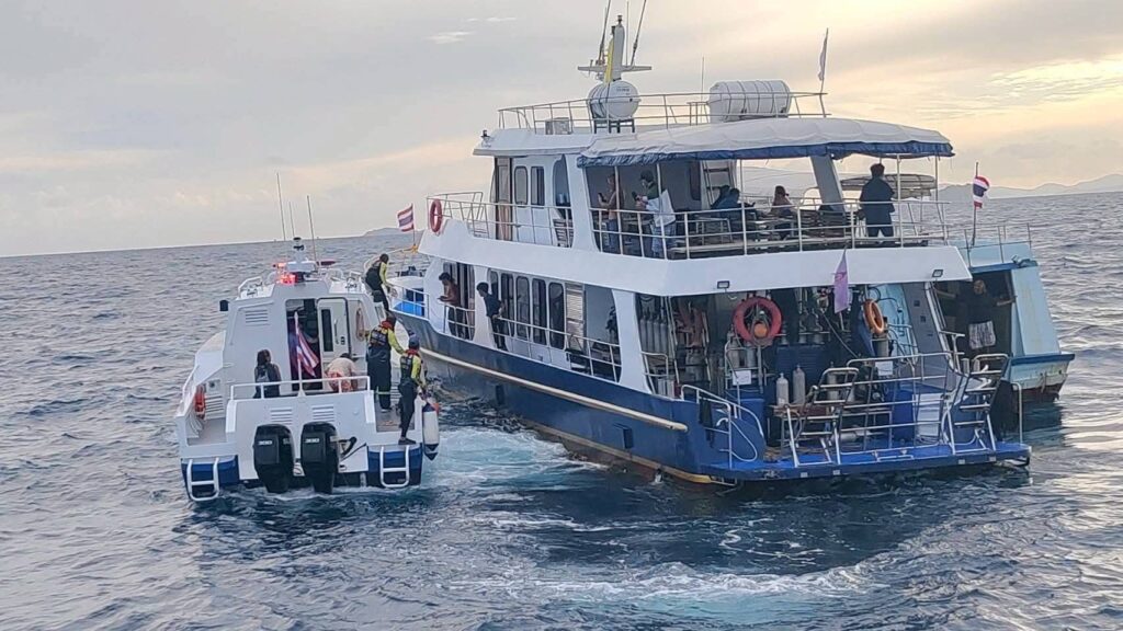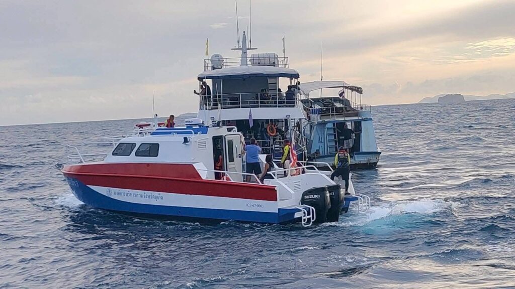 อบจ.ภูเก็ต เข้าช่วยเหลือนักท่องเที่ยวเหตุเรือทัวร์รั่วกลางทะเล เมื่อวันที่ 9 กรกฎาคม 2568 นายเรวัต อารีรอบ นายกองค์การบริหารส่วนจังหวัดภูเก็ต ได้มอบหมายให้เจ้าหน้าที่ศูนย์ช่วยเหลือนักท่องเที่ยว (ศูนย์ไข่มุก) กองป้องกันและบรรเทาสาธารณภัย อบจ.ภูเก็ต เข้าดำเนินการช่วยเหลือนักท่องเที่ยวจากเหตุการณ์เรือนำเที่ยวประสบปัญหาระหว่างเดินทาง เหตุเกิดเมื่อเวลา 16.50 น. ศูนย์ช่วยเหลือฯ ได้รับแจ้งจากผู้ประกอบการทัวร์ดำน้ำว่า เรือ Poseidon ซึ่งบรรทุกนักท่องเที่ยวชาวต่างชาติ จำนวน 5 ราย ประสบเหตุท่อไอเสียชำรุด ส่งผลให้เรือรั่วขณะเดินทางกลับจากการท่องเที่ยวทางทะเล พิกัดที่เกิดเหตุอยู่ระหว่างเกาะยาวและเกาะเขียว เจ้าหน้าที่จึงได้นำ เรือตรวจการณ์ 3 ออกปฏิบัติการช่วยเหลืออย่างเร่งด่วน โดยสามารถรับตัวนักท่องเที่ยวทั้งหมดขึ้นจากเรือ และนำส่งกลับถึงท่าเรืออ่าวฉลองอย่างปลอดภัยโดยไม่มีผู้ใดได้รับบาดเจ็บ ในขณะเดียวกัน เจ้าหน้าที่บนเรือ Mermaid ได้เข้าดำเนินการอุดรอยรั่ว ป้องกันน้ำทะลักเข้าตัวเรือ ก่อนที่ เรือไข่มุกอันดามัน 3 และเรือ Mermaid จะร่วมกันลากจูงเรือ Poseidon กลับเข้าฝั่งได้อย่างปลอดภัย #อบจภูเก็ตดูแลประชาชน